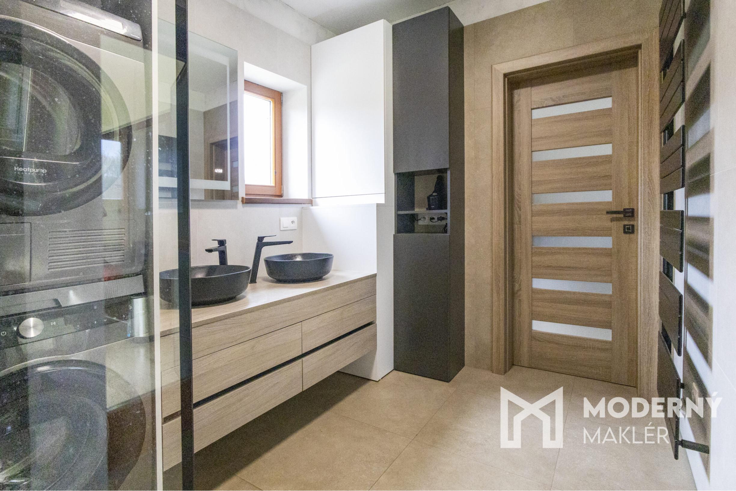 Dom sa predáva čiastočne zariadený. Disponuje veľkou obývacou izbou spojenou s kuchyňou, z ktorej je výstup na uzatvorenú terasu. Ďalej sú dostupné dve izby orientované na južnú stranu a kúpeľňa zariadená kvalitnými materiálmi a modernými spotrebičmi. V kúpeľni je sprchový kút, závesné WC, dve keramické umývadlá, práčka, sušička a rebrinový radiátor. Z kúpelne je priamy výstup na terasu. V centrálnej miestnosti je piecka na prídavné vykurovanie. V dome je namontovaná smart klimatizácia.