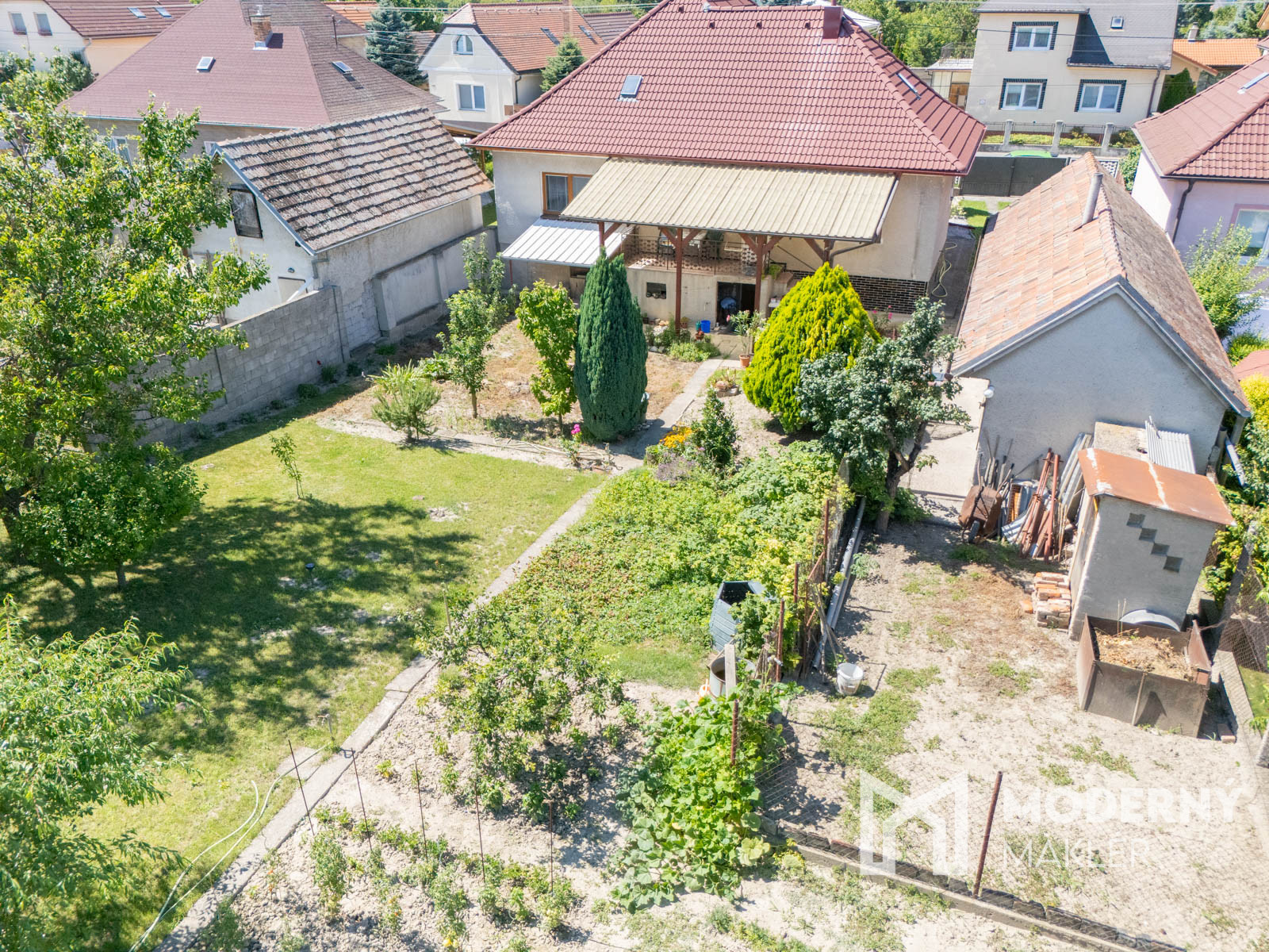 Dom s výhodnou orientáciou na severovýchod a severozápad zaručuje príjemné prostredie bez nadmerných popoludňajších horúčav. Hlavný vchod vás privíta praktickým priestorom so šatníkom, botníkom a kreslom, odkiaľ sa dostanete do centrálnej časti momentálne využívanej ako jedáleň. Nachádza sa tu jedálenský stôl so stoličkami. Nehnuteľnosť ďalej ponúka tri samostatné nepriechodné a priestranné izby vybavené nábytkom, ktorý v dome zostáva. K dispozícii je kúpeľňa so sprchovým kútom a WC, samostatná komora využiteľná aj ako šatník, a priestranná kuchyňa s udržiavanou kuchynskou linkou so zabudovanými spotrebičmi vrátane plynového sporáka značky MORA, elektrickej varnej platne ELEKTROLUX a chladničky s mrazničkou ELEKTROLUX. Zo zadnej časti domu je východ na terasu s nádhernými výhľadmi na krásnu záhradu. Z centrálnej časti domu vedie vchod do podkrovia, kde sa nachádza dostatok priestoru na zobytnenie, skladovanie alebo využitie ako ateliér či kancelária. Do suterénu sa dostanete buď z prízemných priestorov suchou nohou alebo samostatným vchodom zo záhrady. Nachádza sa tu hlavný priestor spojený s technickou miestnosťou, kde je umiestnený plynový kotol a dostatok úložného priestoru. K dispozícii sú dva veľké samostatné skladové priestory, ktoré ocení každý kutil. Záhrada ktorá obklopuje dom je malým rajom na zemi. Udržiavaná zeleň a rozmanitá dospelá vegetácia od hrušiek, jabloní, čerešne, hruška, slivka rôzne bylinky a ostružiny, záhradné rôznorodé zrejúce plodiny až po rozmanité kvety. Výhodou je vlastná studňa s čerpadlom so štyrmi možnosťami napojenia na polievanie . Pozemok ponúka široké možnosti využitia. Okrem potenciálu ďalšej výstavby sa na ňom nachádza aj praktická hospodárska budova so skladovými priestormi, ktorú možno prispôsobiť na letnú kuchyňu, dielňu , hobby priestor, či iné funkčné využitie. Rodinný dom sa nachádza na oplotenom pozemku s možnosťou parkovania vo dvore aj pred domom.