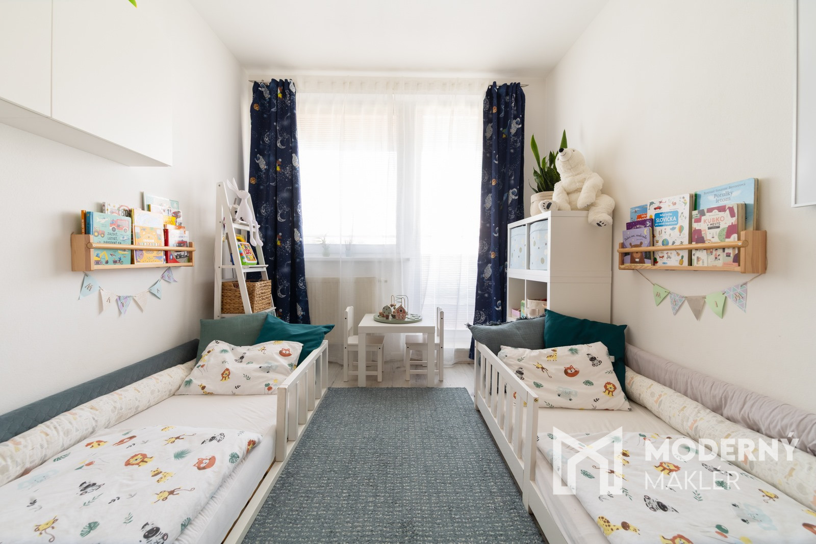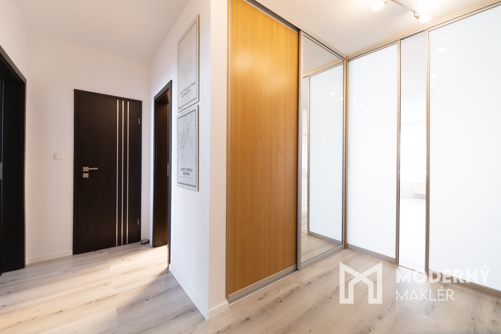 Byt pozostáva z priestrannej vstupnej chodby s veľkým úložným priestorom vďaka vstavaným skriniam. Po ľavej strane sa nachádza detská izba s výstupom na balkón a hlavná spálňa taktiež s vlastným výstupom na balkón. V byte nájdete samostatné WC a kúpeľňu vybavenú rohovou vaňou. Po vstupe z hlavnej chodby sa otvára krásny, veľký a presvetlený spojený priestor, ktorý tvorí kuchynská časť prepojená s obývacou časťou s príjemným výstupom na terasu.
