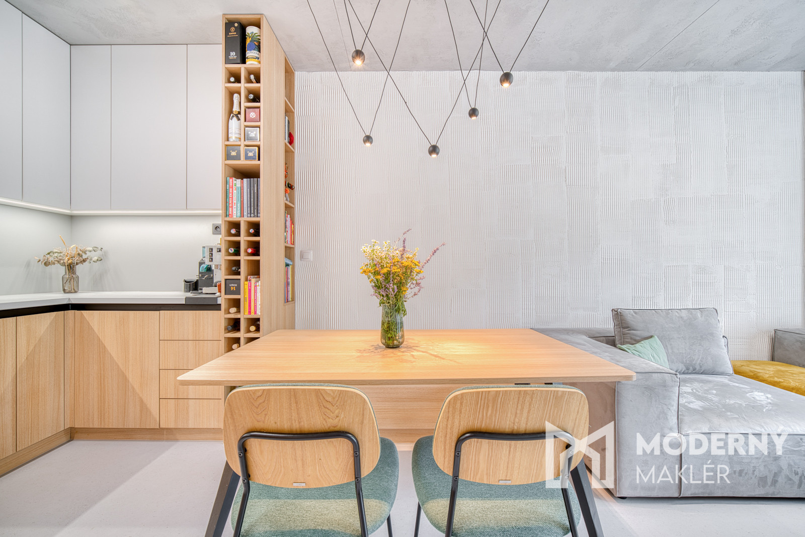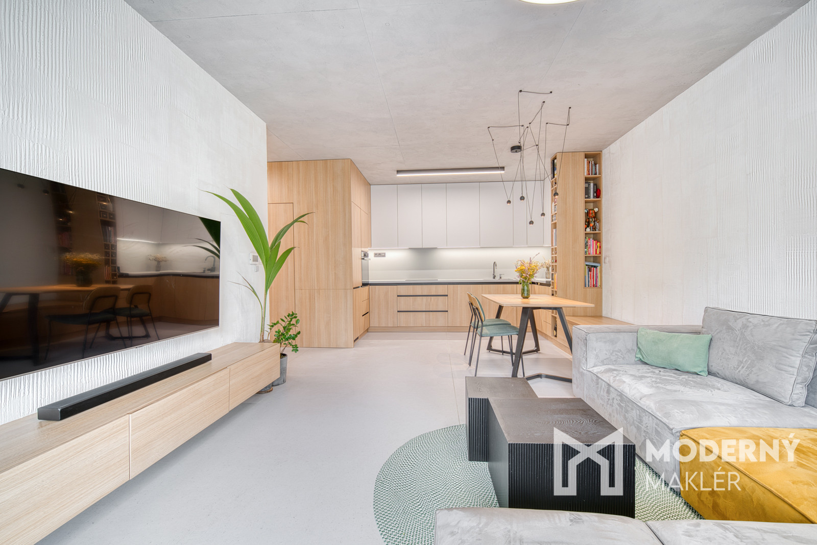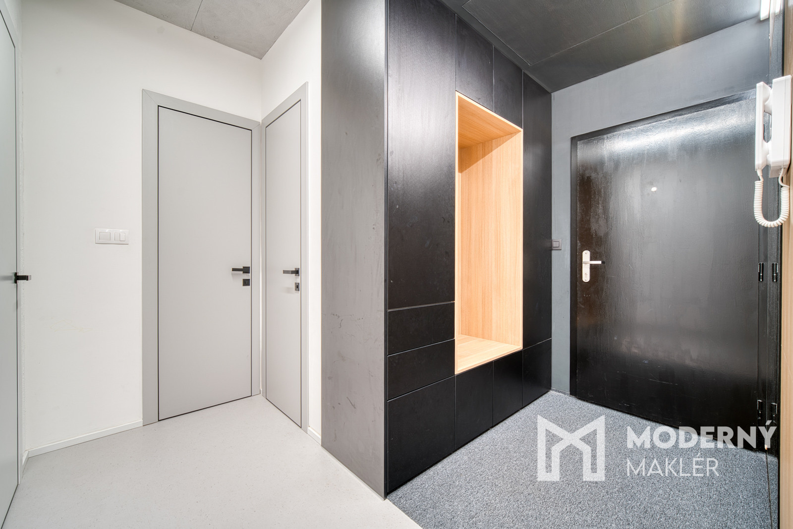 Byt sa predáva kompletne zariadený nábytkom na mieru. Bol navrhnutý architektonickým štúdiom IAVD architekt, ktorý vytvoril nadčasový dizajn bytu s funkčnosťou a premyslenými detailami. Každý centimeter priestoru je využitý efektívne a s dôrazom na estetiku. V kuchyni sa nachádza svetlá kuchynská linka so spotrebičmi (indukčná varná doska, digestor, teplovzdušná rúra, umývačka riadu, chladnička). Obývacia časť dotvára moderný vzhľad kuchyne a poskytuje ideálny priestor na filmový zážitok. Kuchyňa spojená s obývačkou ponúka koberce a stoličky značky KAVE a konferenčný stolík značky MUZZA. V kúpeľni sa nachádza sprchový kút s dizajnovým umývadlom, skrinkami s uložným priestorom a zrkadlom. Spálňa je vybavená pohodlnou posteľou s 2 šatníkovými skriňami. Druhá izba poskytuje priestor pre deti a ich kreatívne využitie času. Práčka so sušičkou sa nachádzajú v samostatnej miestnosti.