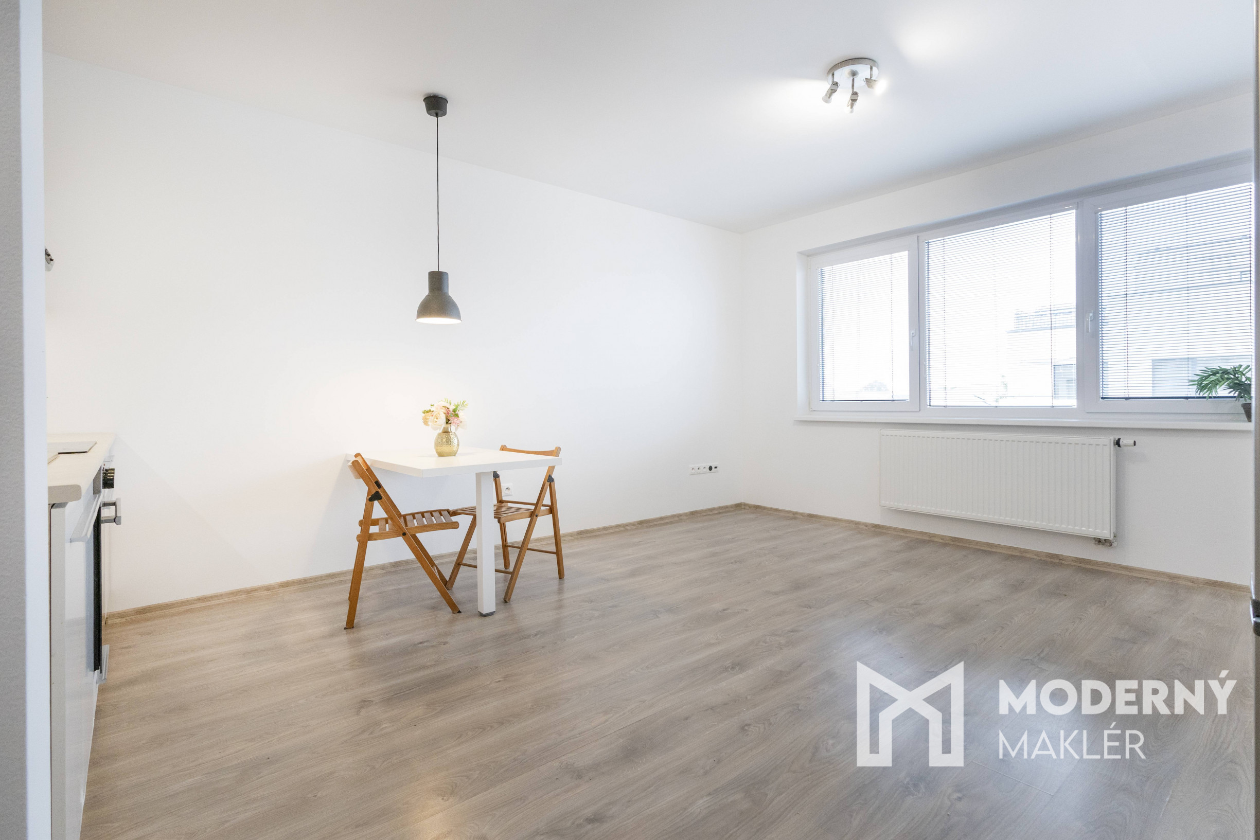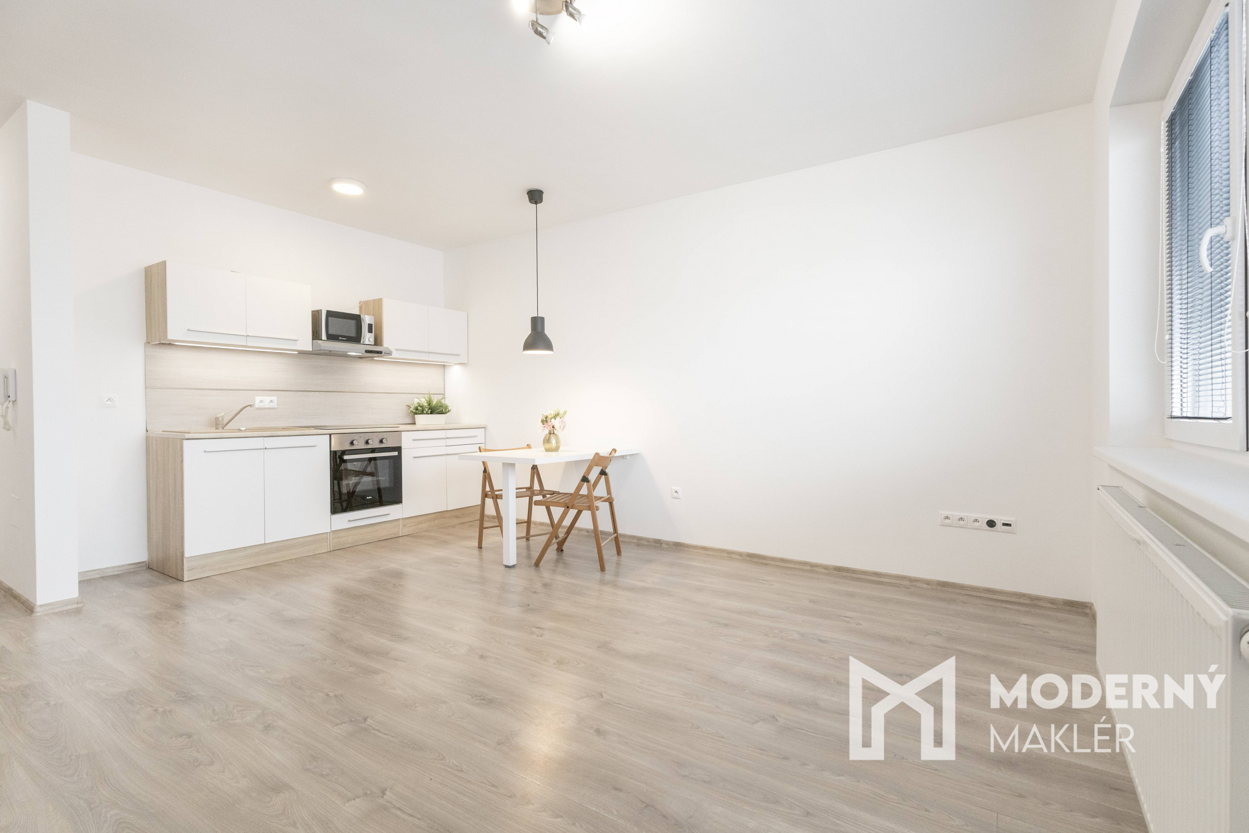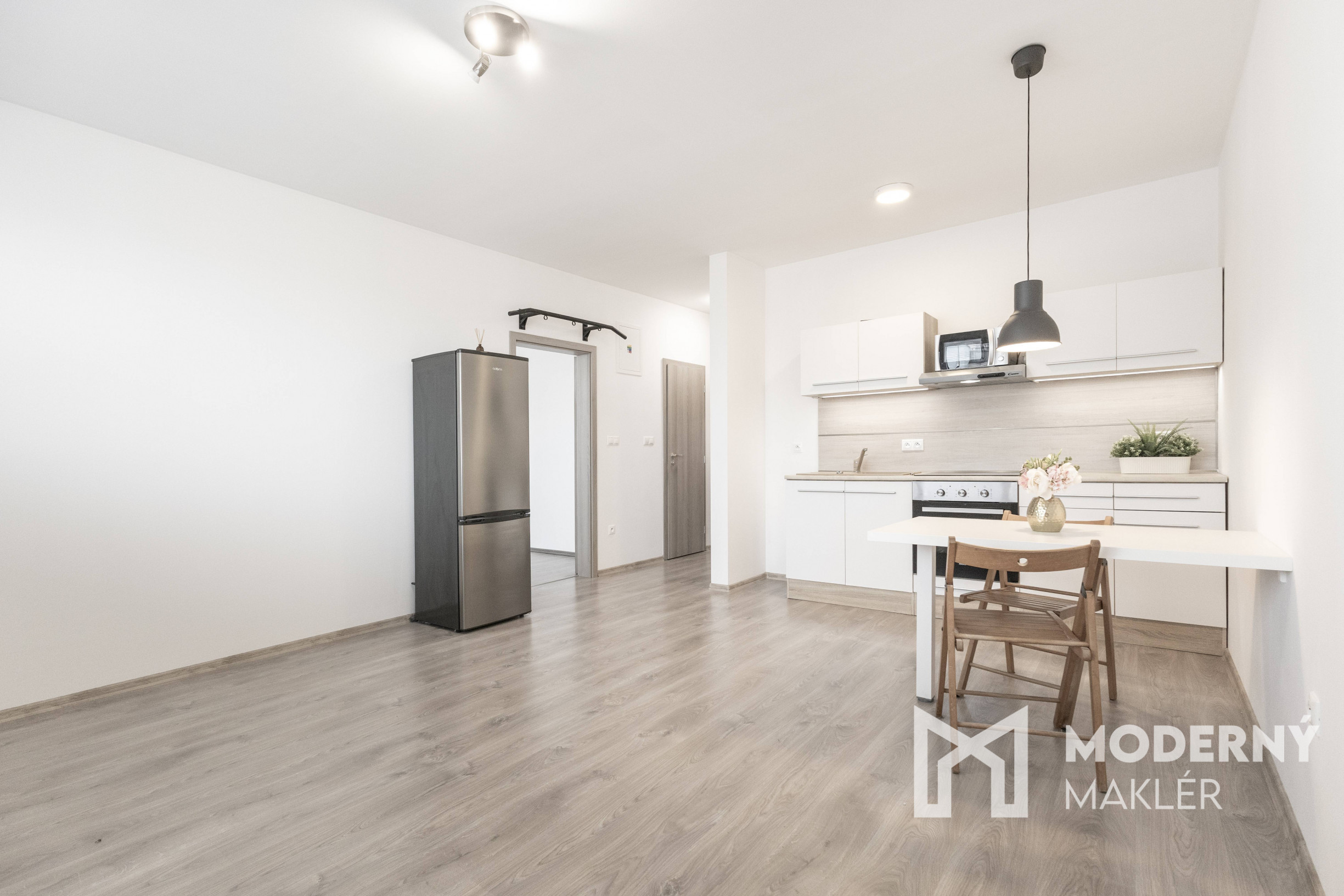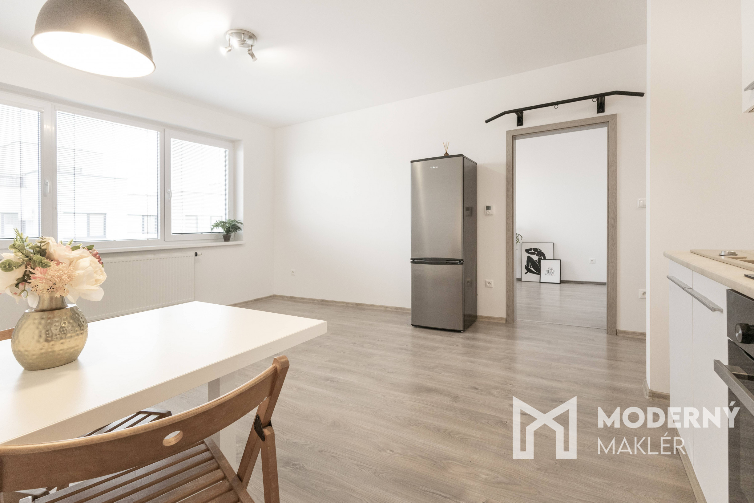 Moderný maklér ponúka na prenájom štýlový 2-izbový byt s loggiou a vlastným parkovacím státím vo vyhľadávanej rezidencii „Nové bývanie“ v obci Hviezdoslavov, len 20 km od Bratislavy. Byt sa nachádza na prvom poschodí menšieho tehlového bytového domu bez výťahu, v ktorom sú iba tri bytové jednotky, čo zaručuje komornú atmosféru a vyššiu mieru súkromia.