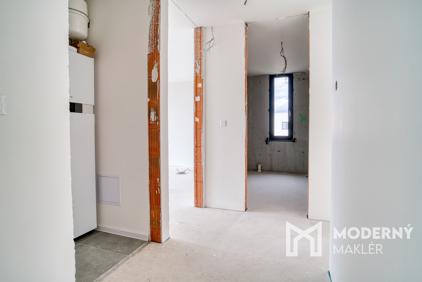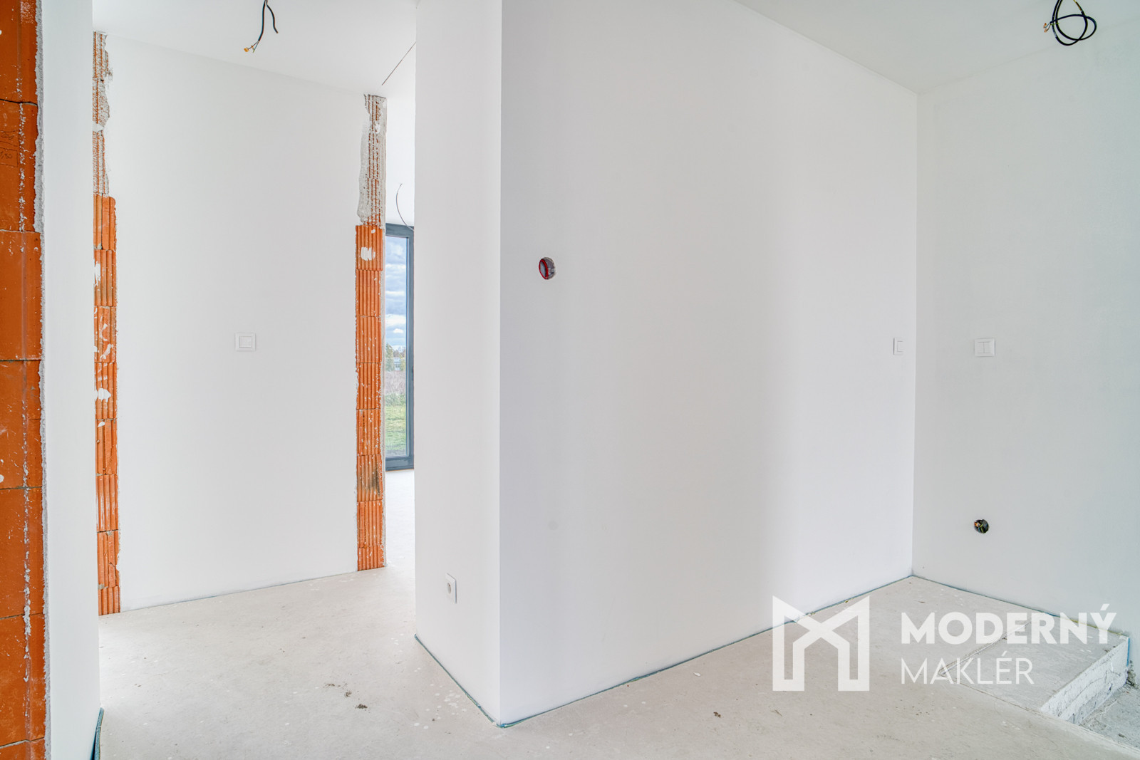 Dom má prípravu na klimatizáciu v každej izbe, fotovoltaiku a elektrické exteriérové žalúzie. Strojové omietky, hygienické nátery a čisté línie interiéru vytvárajú moderný a zdravý priestor pre nové bývanie.