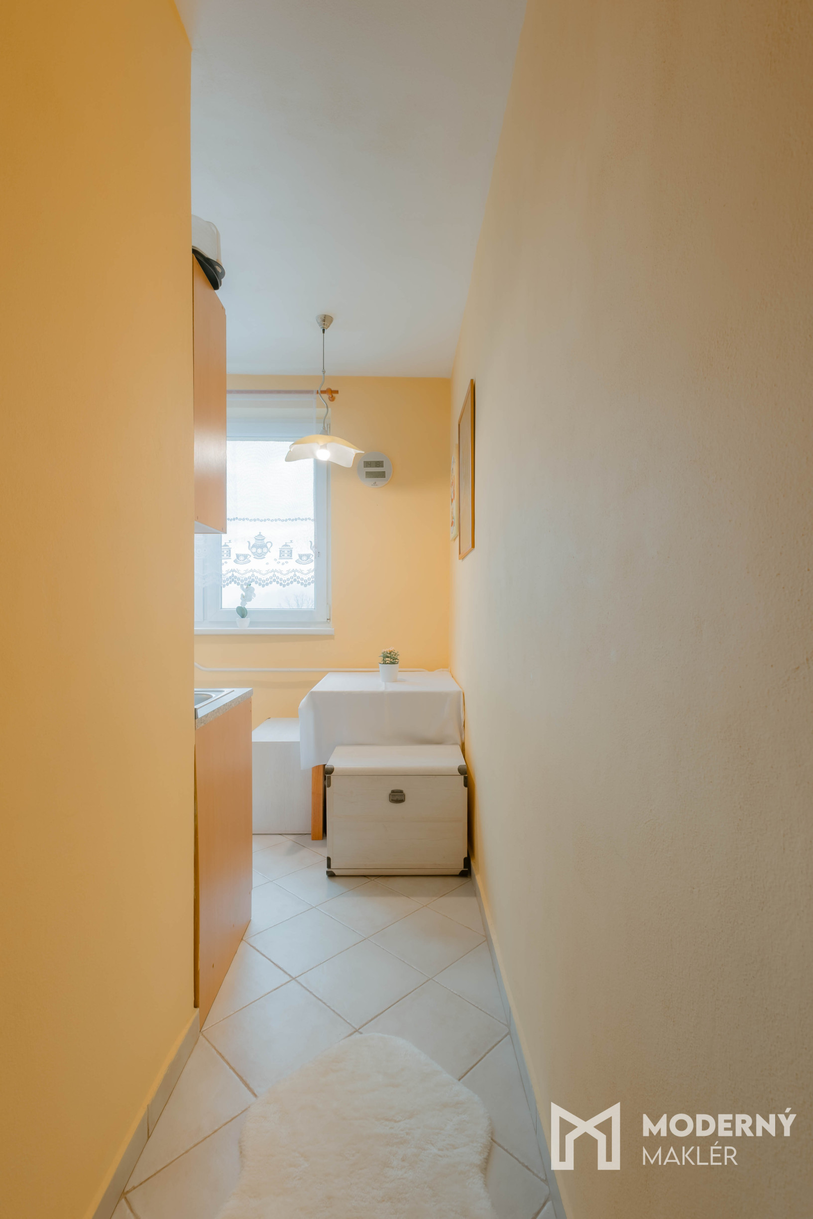 Byt pozostáva zo vstupnej chodby, ktorá vás privíta hneď po vstupe do nehnuteľnosti. Nachádza sa tu priestranná spálňa ponúkajúca dostatok priestoru na oddych. Byt disponuje kúpeľňou so sprchovým kútom a samostatným WC pre vyšší komfort. Hlavný obytný priestor tvorí veľká obývacia izba orientovaná na západ, ktorá poskytuje príjemné miesto na relax aj trávenie voľného času. Kuchyňa je prakticky oddelená od obývačky, čo umožňuje pohodlnú prípravu jedál a efektívne využitie priestoru.