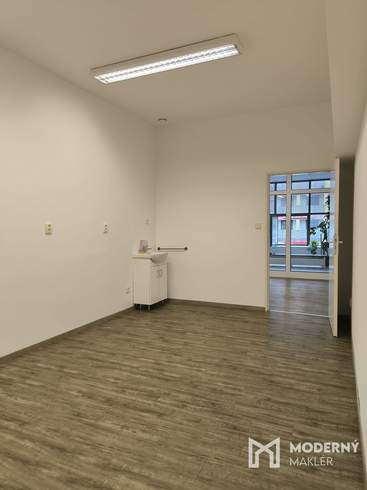 Priestory disponujú vinylovou podlahou na chodbe aj vo vnútri. Dostatok prirodzeného svetla zabezpečujú presklené steny v prednej časti. V zadnej miestnosti sa nachádza umývadlo a k priestorom prislúchajú tiež dámske a pánske toalety a kuchynka, ktoré nájdete na poschodí.