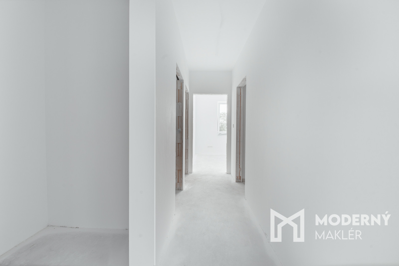Do domu vstupujete cez bezpečnostné dvere, kde sa hneď oproti nachádza praktická pivničná kobka. Na prvé poschodie vedie pohodlné schodisko, ktoré vás privedie priamo k bytu. Za vstupnými dverami sa ocitnete v priestrannej chodbe, z ktorej je rozmiestnený celý byt. Priamo oproti vchodu sa nachádza samostatná toaleta a technická miestnosť. Po pravej strane vstúpite do veľkej obývacej izby prepojenej s kuchyňou. Z obývacej časti je prístup na loggiu, ktorý poskytuje príjemný vonkajší priestor a zároveň zabezpečuje interiér prirodzeným svetlom. Vedľa obývačky je situovaná spálňa. Na ľavej strane od vstupu nájdete kúpeľňu spojenú s WC a vedľa dve detské izby. Táto premyslená dispozícia spája funkčnosť s komfortom a ponúka ideálne zázemie pre rodinný život.