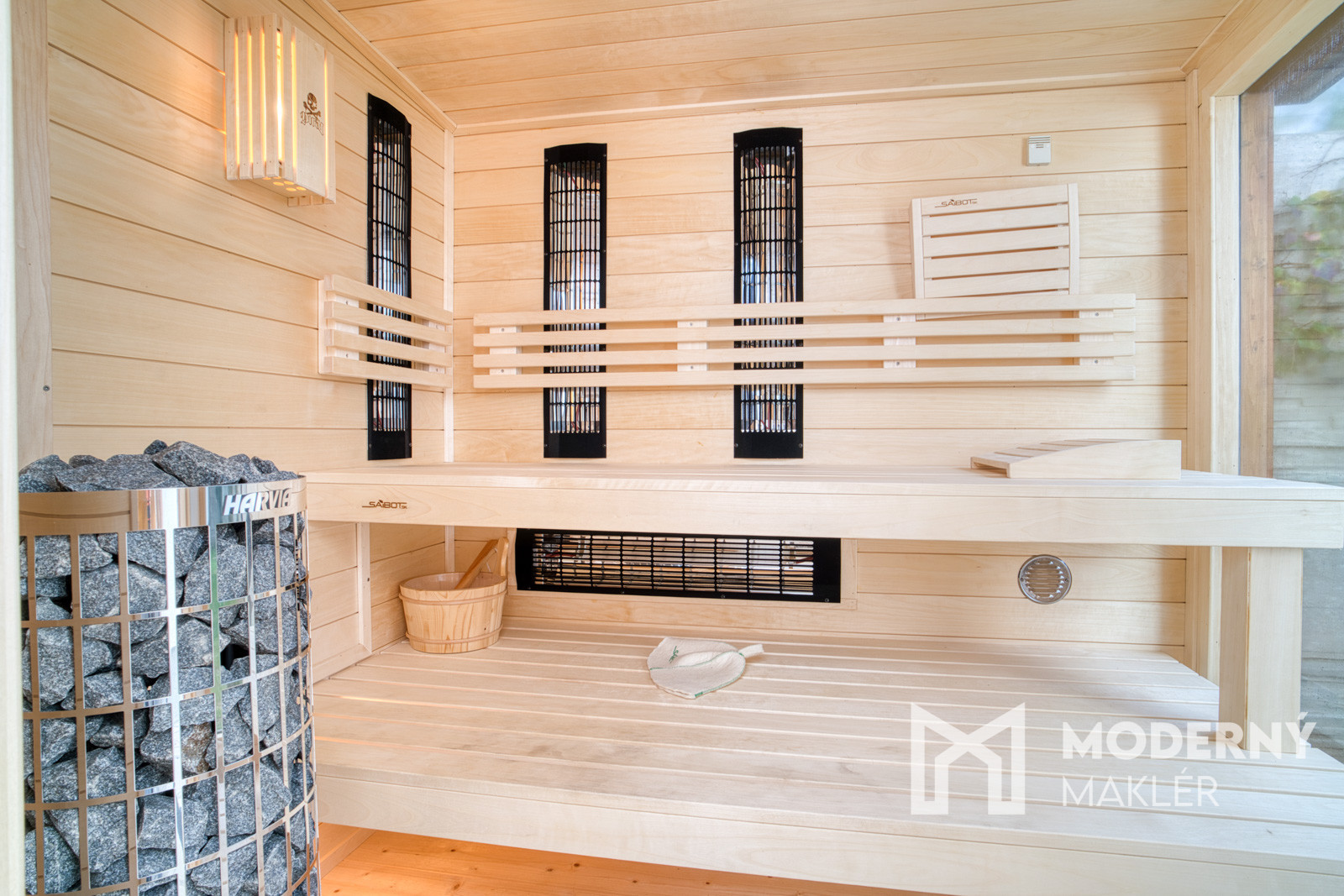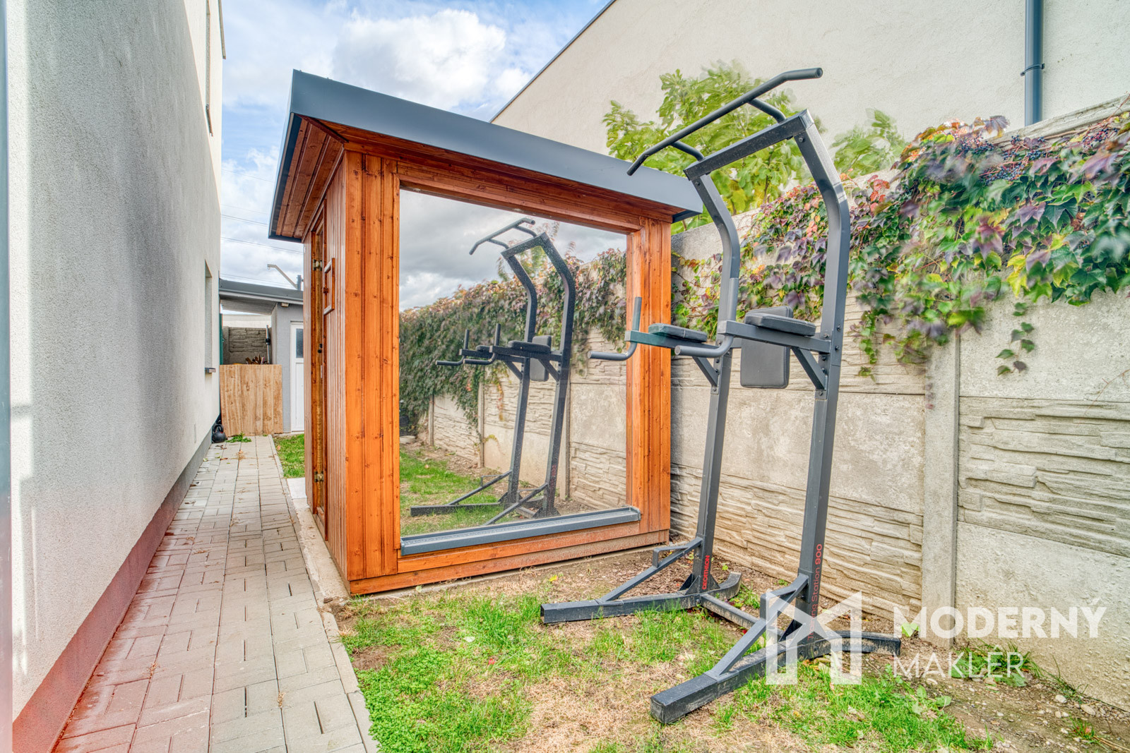 Dom sa predáva kompletne zariadený vrátane kuchynskej linky so spotrebičmi, jedálenského setu, sedacej súpravy, vstavaných skríň a ďalšieho nábytku. Súčasťou predaja je sauna a posilňovacia hrazda, ktoré rozširujú možnosti využitia domu o wellness a športovú zónu. K dispozícii je aj nadštandardná televízna technika. Vďaka kompletnému zariadeniu je možné okamžité nasťahovanie bez nutnosti ďalších nákladov.
