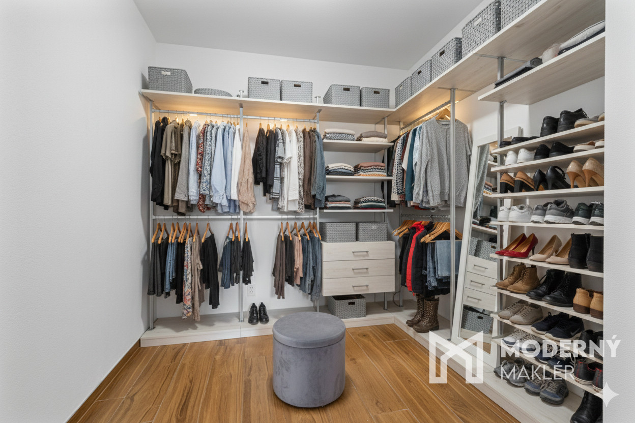 Nehnuteľnosť sa skladá zo vstupnej haly, z ktorej sa dostanete do priestrannej obývacej izby spojenej s kuchyňou a s priamym výstupom do záhrady. Z obývacej izby je k dispozícii vstup do veľkého šatníka. Byt ponúka možnosť prerobenia na dvojizbové riešenie podľa potrieb majiteľa.
