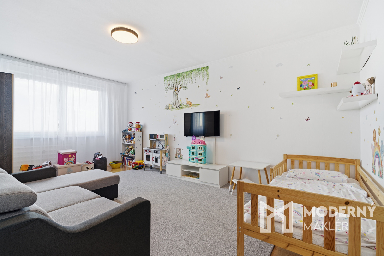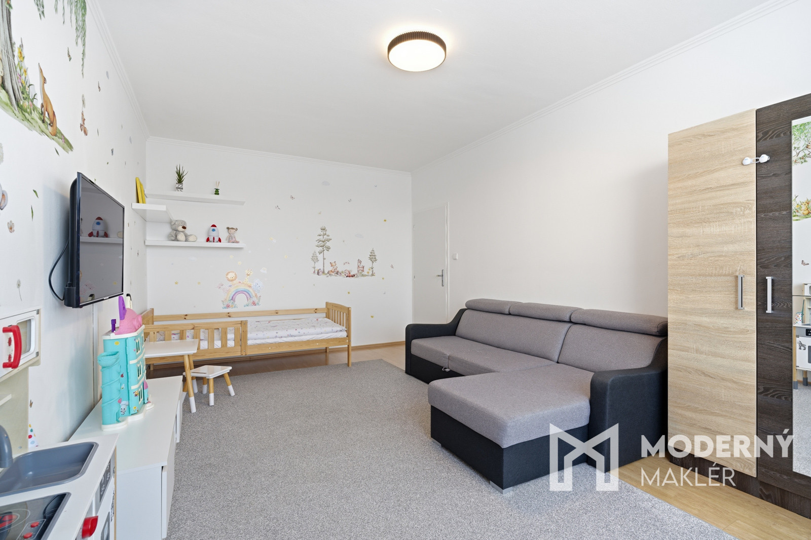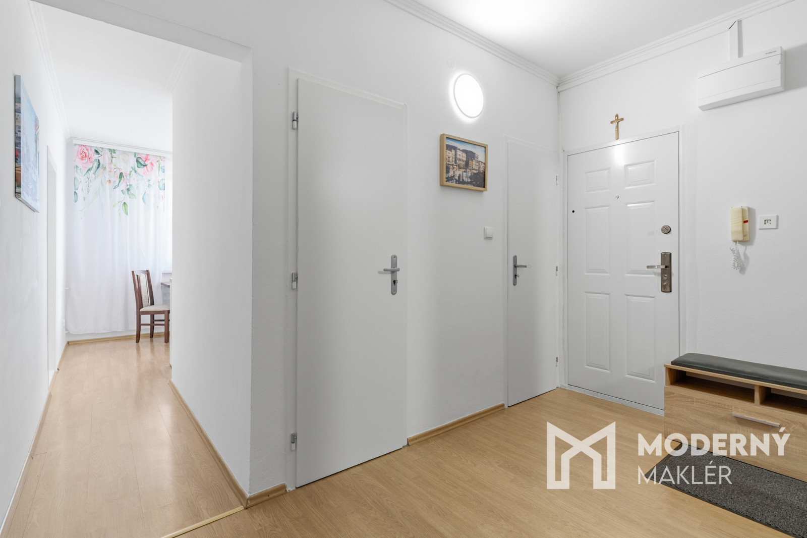 Nehnuteľnosť sa skladá zo vstupnej chodby, z ktorej sa dostanete na samostatnú toaletu a do kúpeľne s vaňou. Ďalej nájdete kuchyňu s praktickou komorou a na druhej strane sa nachádza priestranná veľkometrážna spálňa. Byt je doplnený detskou izbou a obývacou izbou s východom na balkón. Nehnuteľnosť má orientáciu na východ aj západ, čo zabezpečuje dostatok prirodzeného svetla počas celého dňa.