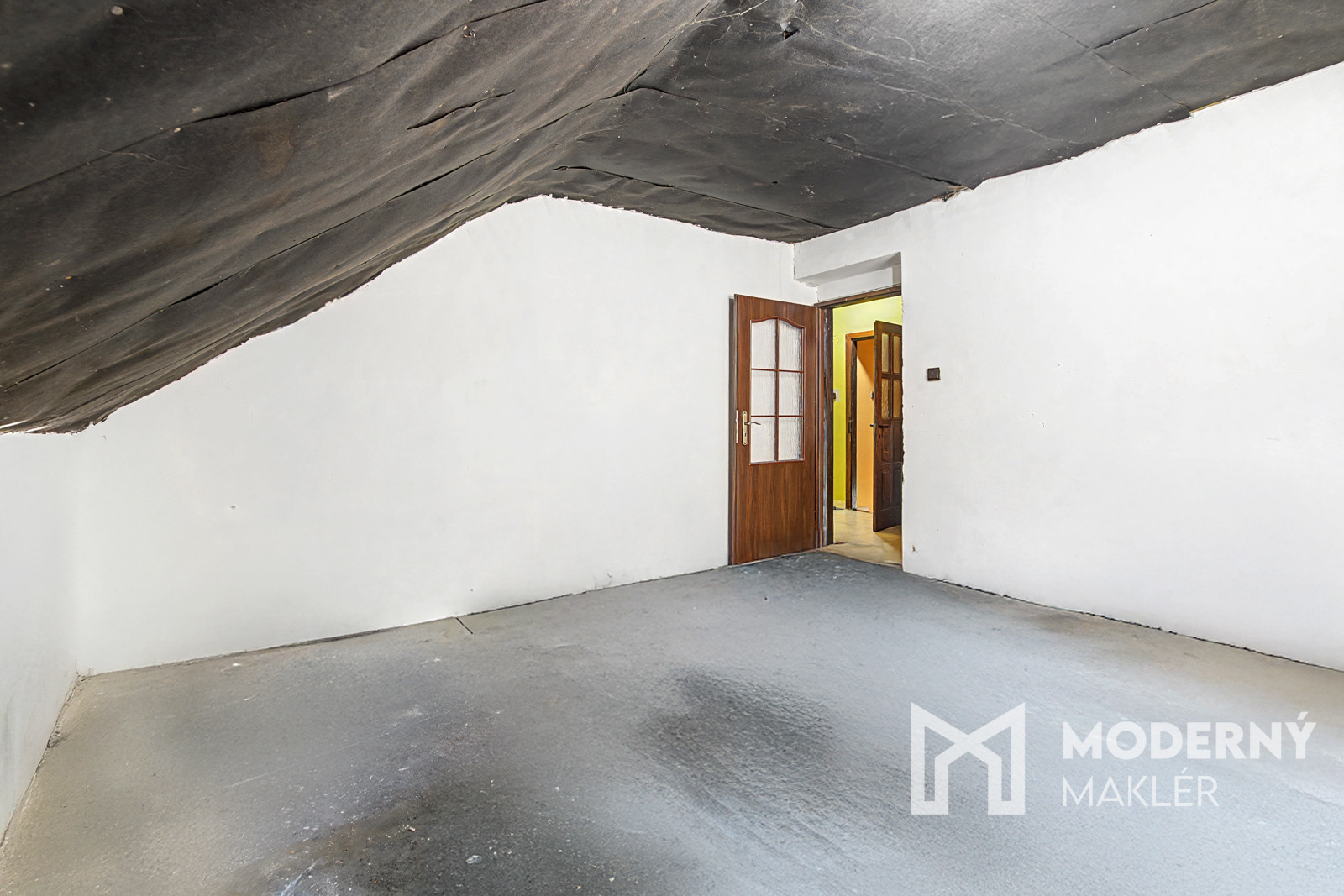 Prvé poschodie: Pozostáva z priestrannej chodby, ktorá spája tri spálne, pričom jedna z nich má vlastný balkón. Ďalej sa tu nachádza menšia miestnosť ideálna ako kuchyňa alebo ďalšia izba a priestor pripravený na kúpeľňu s WC. Zo vstupnej chodby vedú výsuvné schody do podkrovia s potenciálom na obývanie.