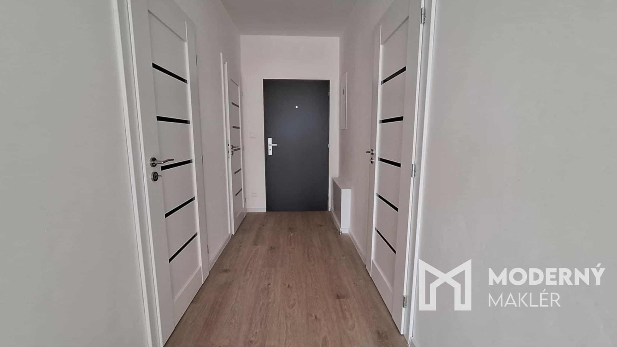 Nehnuteľnosť sa skladá zo vstupnej chodby, samostatného WC s umývadlom, priestrannej kúpeľne s vaňou, sprchovým kútom a WC, praktického šatníka, dvoch priestranných izieb s východom na balkón a obývacej izby spojenej s kuchyňou s východom na slnečnú priestrannú terasu orientovanú na západ. Byt ponúka optimálne rozloženie priestorov s množstvom prirodzeného svetla a priamy prístup na vonkajšie priestory z viacerých miestností.