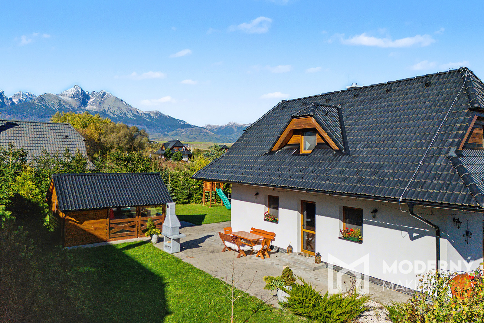 Moderný maklér ponúka na predaj štýlovú a moderne zariadenú rekreačnú chatu situovanú v tichej a atraktívnej lokalite Tatranský Dvor, v obci Stará Lesná, okres Kežmarok. Chata sa nachádza v pokojnej časti novej zástavby s výborným prístupom, ponúka výnimočné súkromie a nádherný výhľad na Lomnický štít. Ide o ideálnu nehnuteľnosť pre milovníkov hôr, ticha a čistej tatranskej prírody, ktorá spája komfort celoročného bývania s vysokým investičným potenciálom na krátkodobý aj dlhodobý prenájom.