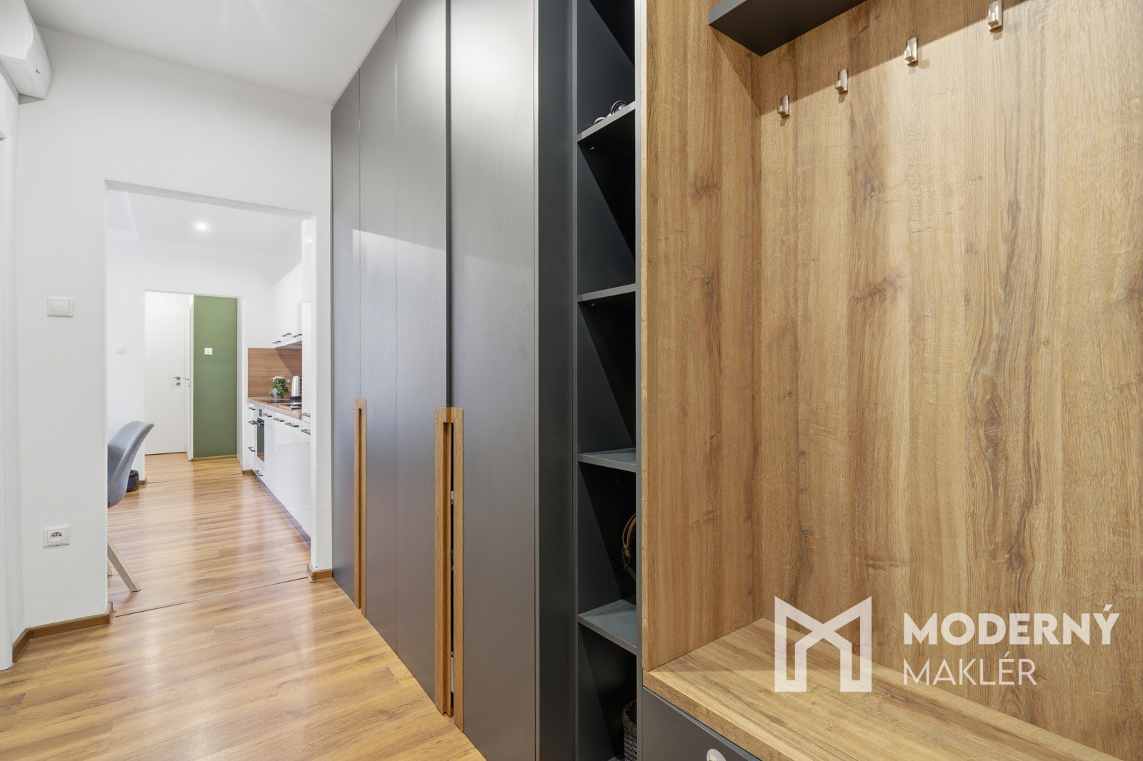 Interiér bytu je navrhnutý veľmi prakticky a účelne, pričom vás privíta vstupná chodba vybavená štedrými vstavanými úložnými priestormi. Srdcom domova je priestranná obývacia izba, ktorá je moderne prepojená s kuchyňou a ponúka priamy výstup na balkón, ideálny na rannú kávu. Nočnú časť bytu tvorí útulná detská izba a hlavná spálňa, ktorej veľkým bonusom je vlastný šatník. Komfort bývania dopĺňa kúpeľňa s vaňou a praktické, samostatne oddelené WC.