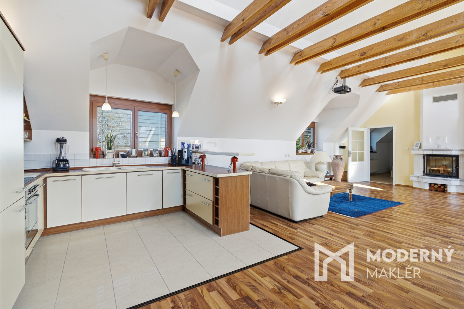 Horné podlažie funguje ako plnohodnotná bytová jednotka. Nachádza sa tu ďalšia kuchyňa spojená s obývacou izbou, čo zabezpečuje úplnú nezávislosť poschodia. Nočná časť pozostáva zo štyroch svetlých izieb a dvoch samostatných kúpeľní, ktoré eliminujú ranné zápchy v rodine.
