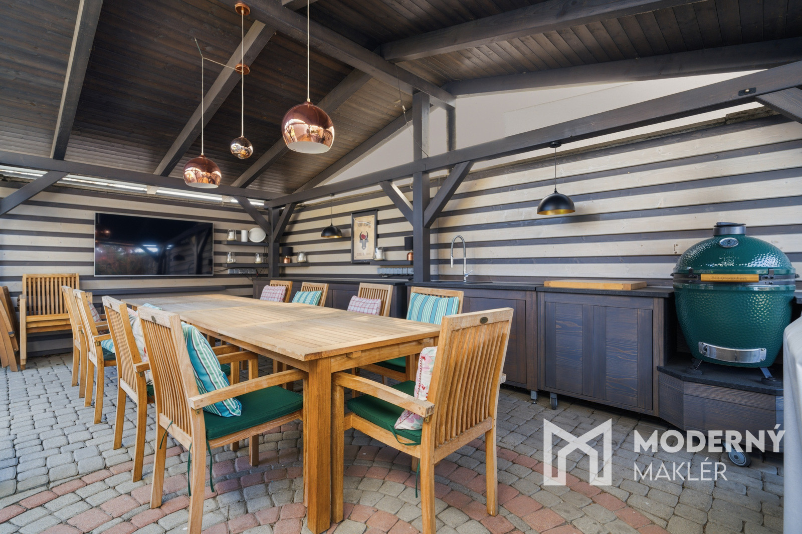 Z horného podlažia je prístup na veľkorysú terasu, ktorá je ako stvorená na letné stolovanie či rannú kávu. Atmosféru pohody dopĺňa altánok, ideálny na večerné grilovanie a relax v súkromí vlastného pozemku. K dispozícii je aj nadštandardná garáž s rozlohou 95 m2, ktorá pohodlne pojme viacero vozidiel alebo poslúži ako dielňa a skladový priestor.