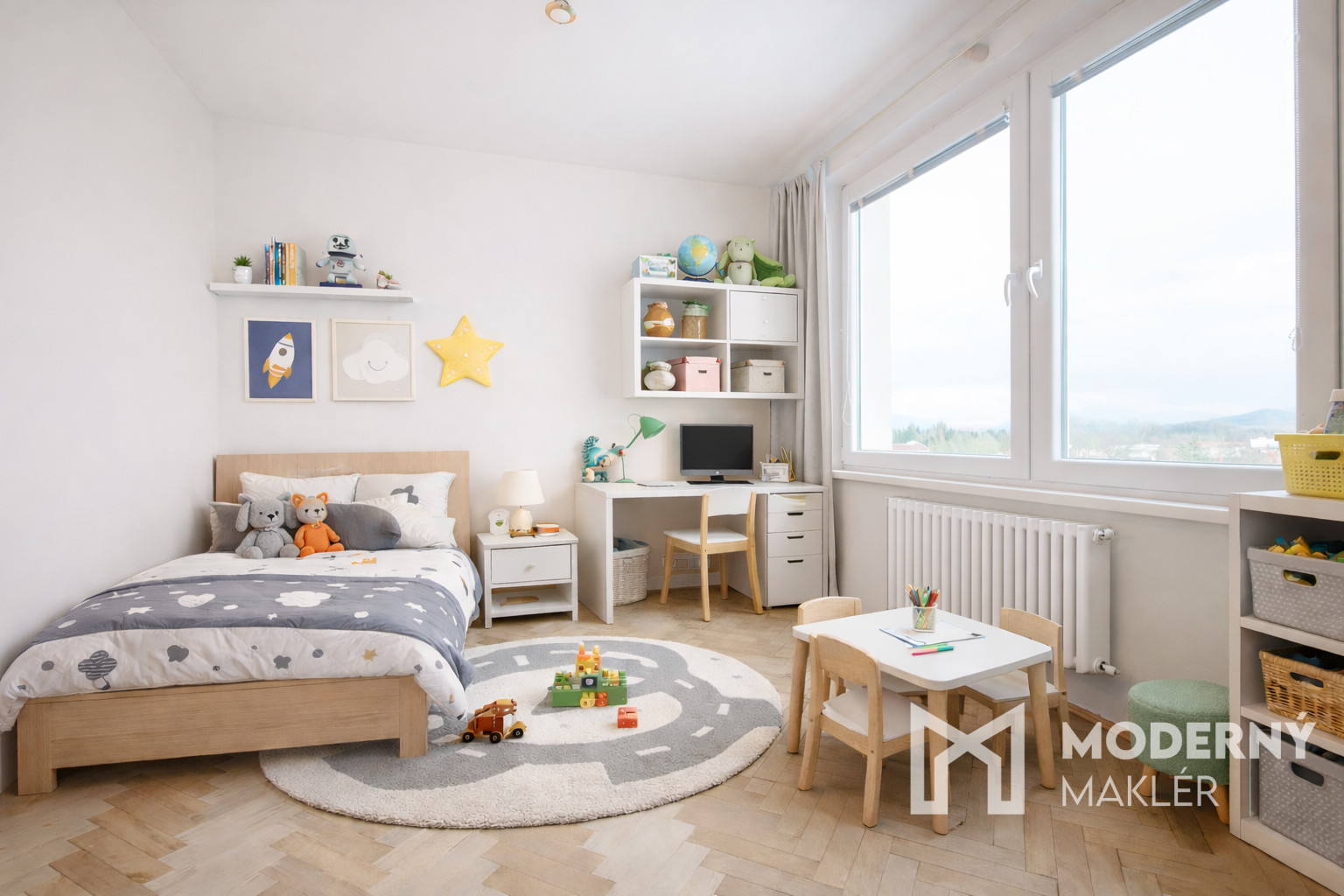 Byt pozostáva zo vstupnej chodby, spálne orientovanej na sever, detskej izby, kuchyne a obývačky s východnou orientáciou a priamym vstupom na loggiu. Súčasťou bytu je kúpeľňa, samostatné WC a praktická špajza. Východné miestnosti ponúkajú dostatok ranného svetla, zatiaľ čo severná spálňa poskytuje tiché a príjemné prostredie na oddych. Dispozícia je praktická, prehľadná a vhodná na pohodlné každodenné bývanie pre rodinu aj pár.
