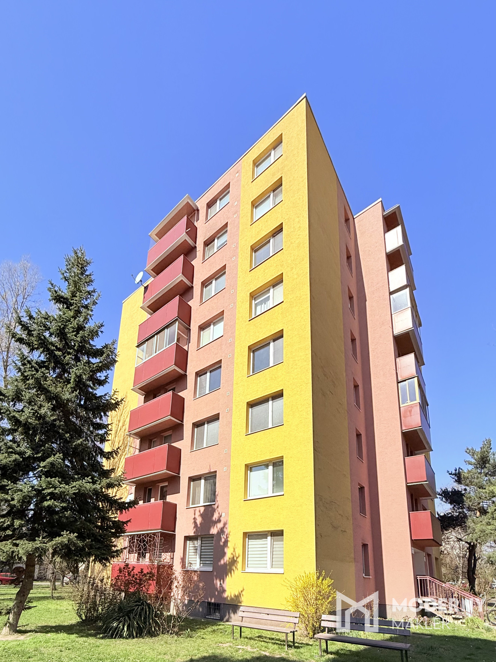Byt s celkovou výmerou 78,66 m² sa nachádza na 3./8 poschodí v zateplenom a kompletne zrekonštruovanom bytovom dome s výťahom.
