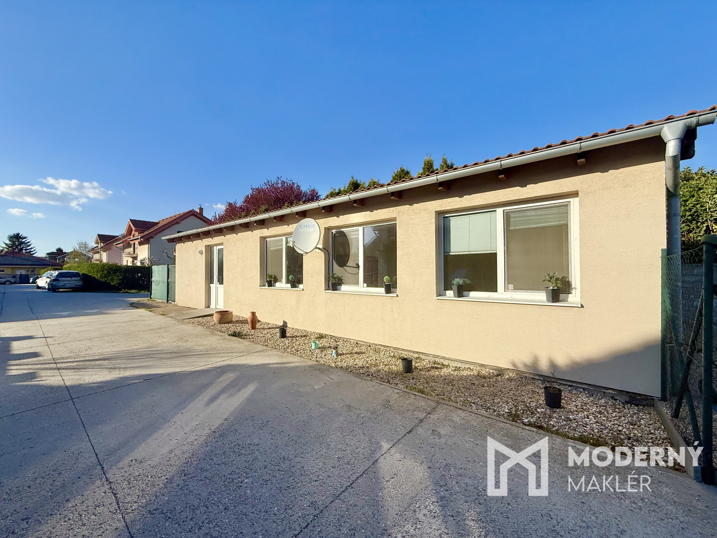 Ponúkaný dom sa nachádza na Úzkej ulici v Rovinke v tichej lokalie v zástavbe rodinných domov. K domu prislúcha oplotená vydláždená terasa o výmere približne 15 m2. Dom pozostáva z 2 obytných miestností – obývačka prepojená s kuchyňou a samostatná spálňa, a príslušenstva: kúpeľňa so sprchovým kútom a toaletou. Zastavaná plocha domu je 60m2. Orientácia domu je juhozápadná. Ohrev teplej vody zabezpečuje vlastný plynový kotol a vykurovanie je doskovými radiátormi. Vstup do domu je priamo z tichej uličky. Pri vchode je miesto na parkovanie jedného vozidla.