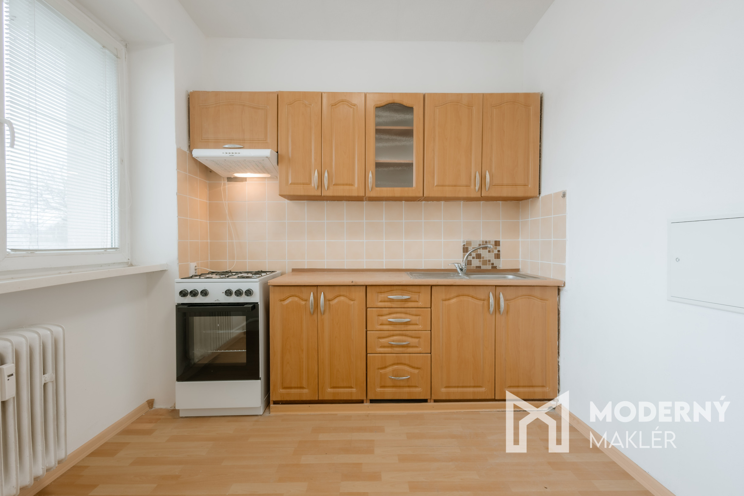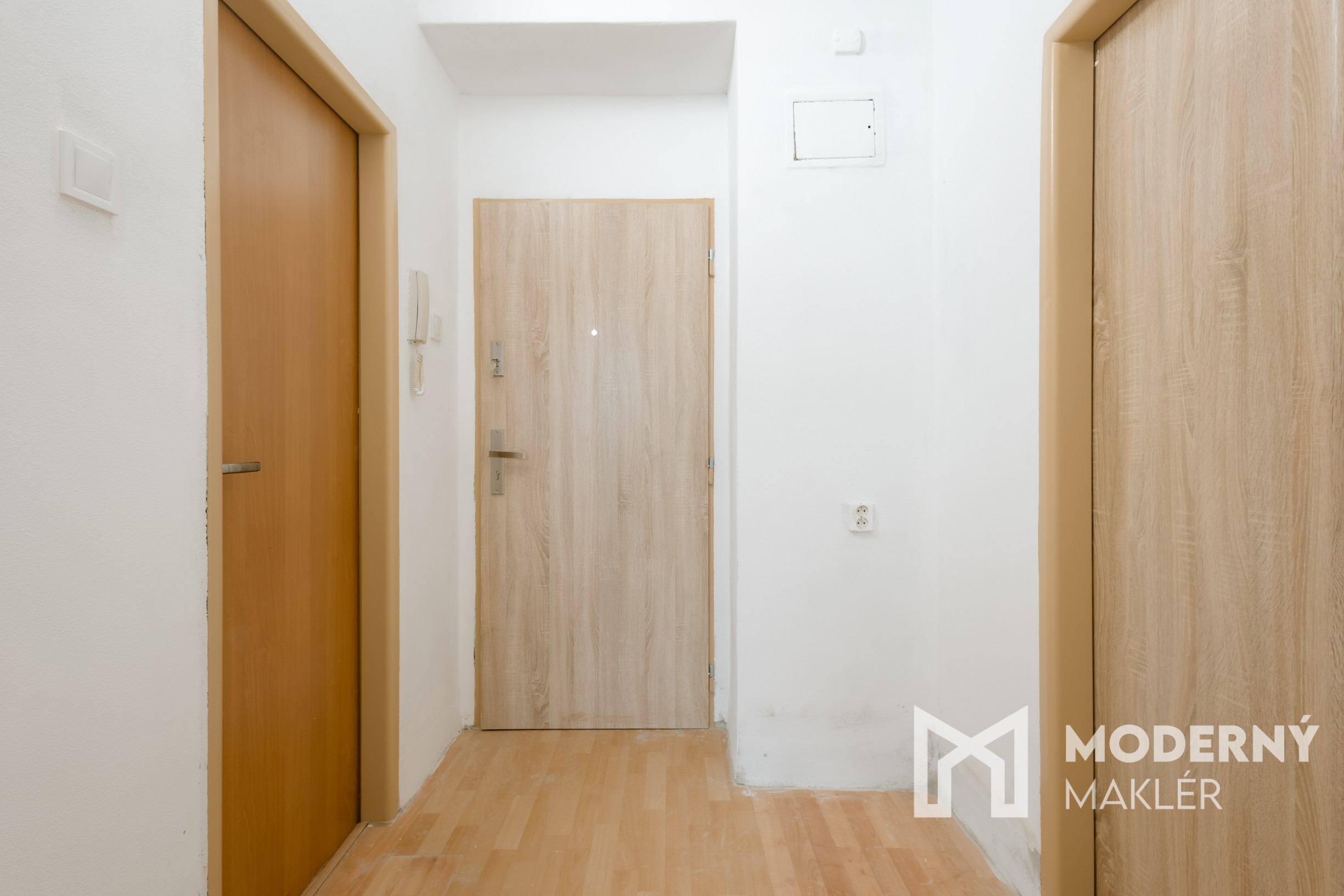 Nehnuteľnosť sa skladá zo vstupnej chodby. Ďalej sa tu nachádza kúpeľňa s WC, praktická kuchyňa a samostatná izba s priamym výstupom na loggiu. Obytné priestory sú orientované na východnú stranu, čím je zabezpečené príjemné ranné osvetlenie.