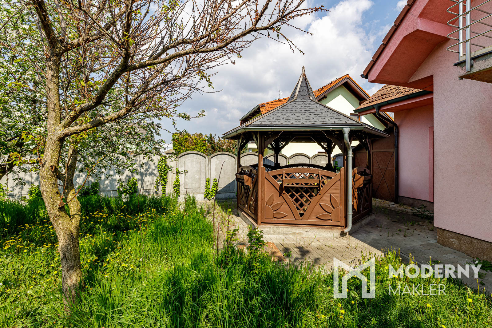 Exteriér nehnuteľnosti dopĺňa nádherná, priestranná záhrada s dreveným altánkom, ktorá prirodzene rozširuje obytný priestor domu a vytvára ideálne miesto na oddych, rodinné stretnutia či pokojné chvíle v súkromí. Súčasťou je aj plnohodnotný záhradný domček na náradie, ktorý zabezpečuje praktické uskladnenie bez zásahu do interiéru. Nechýba ani samostatná garáž so skladovým priestorom, ktorá prináša komfortné parkovanie a ďalší úložný priestor pre každodenné potreby.