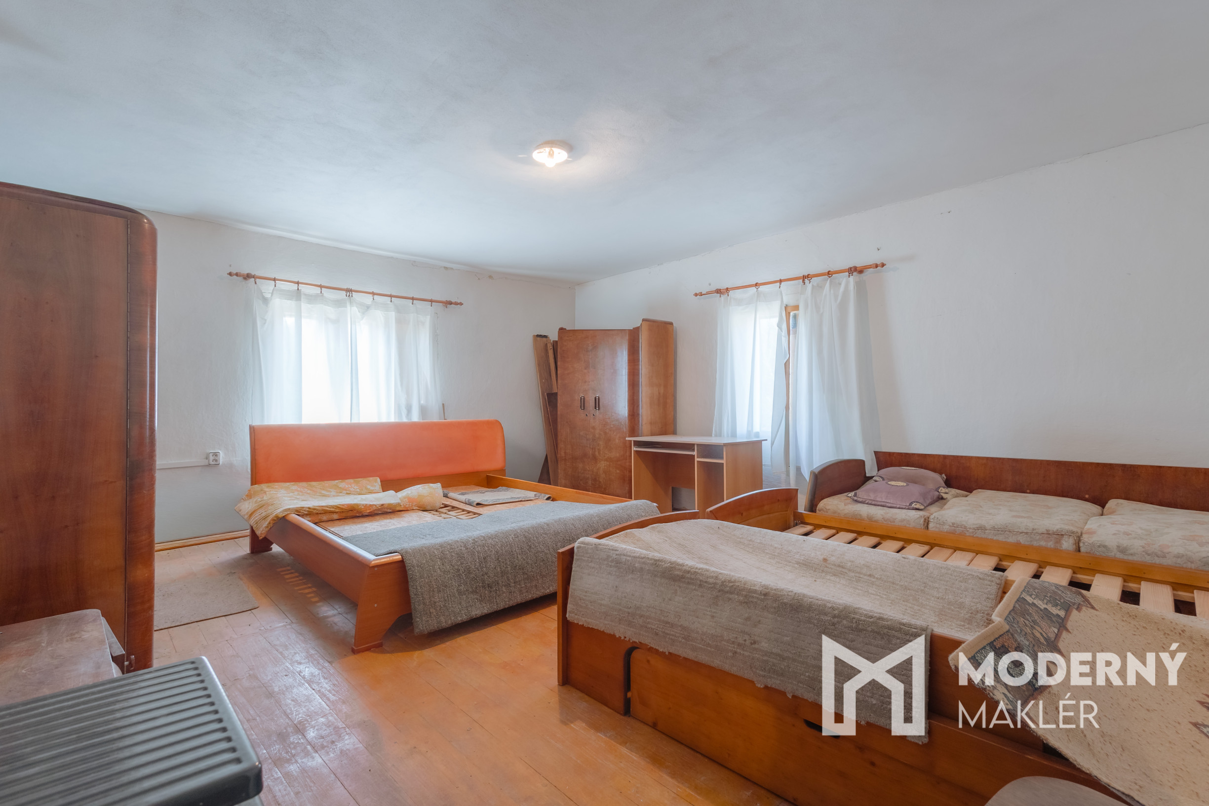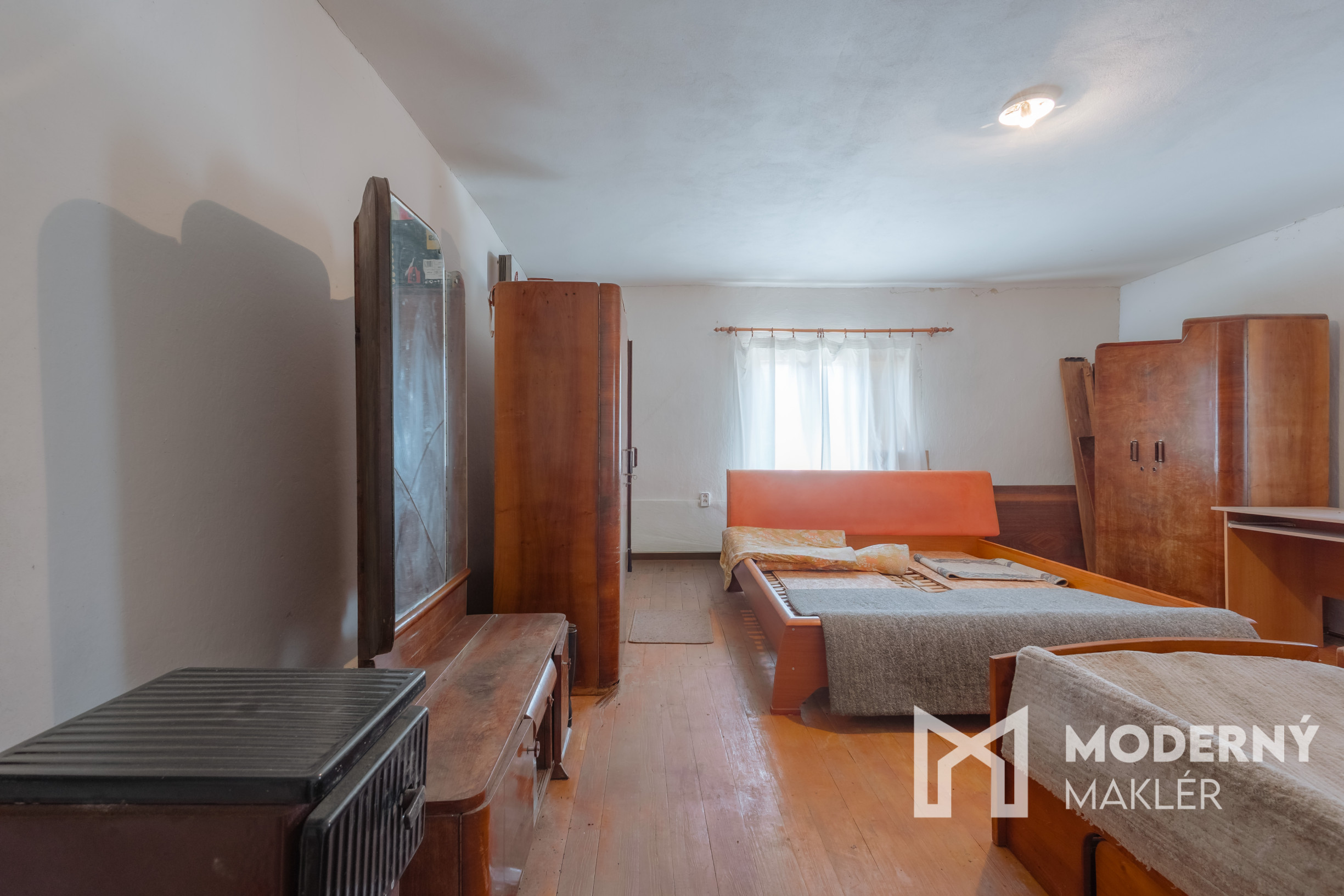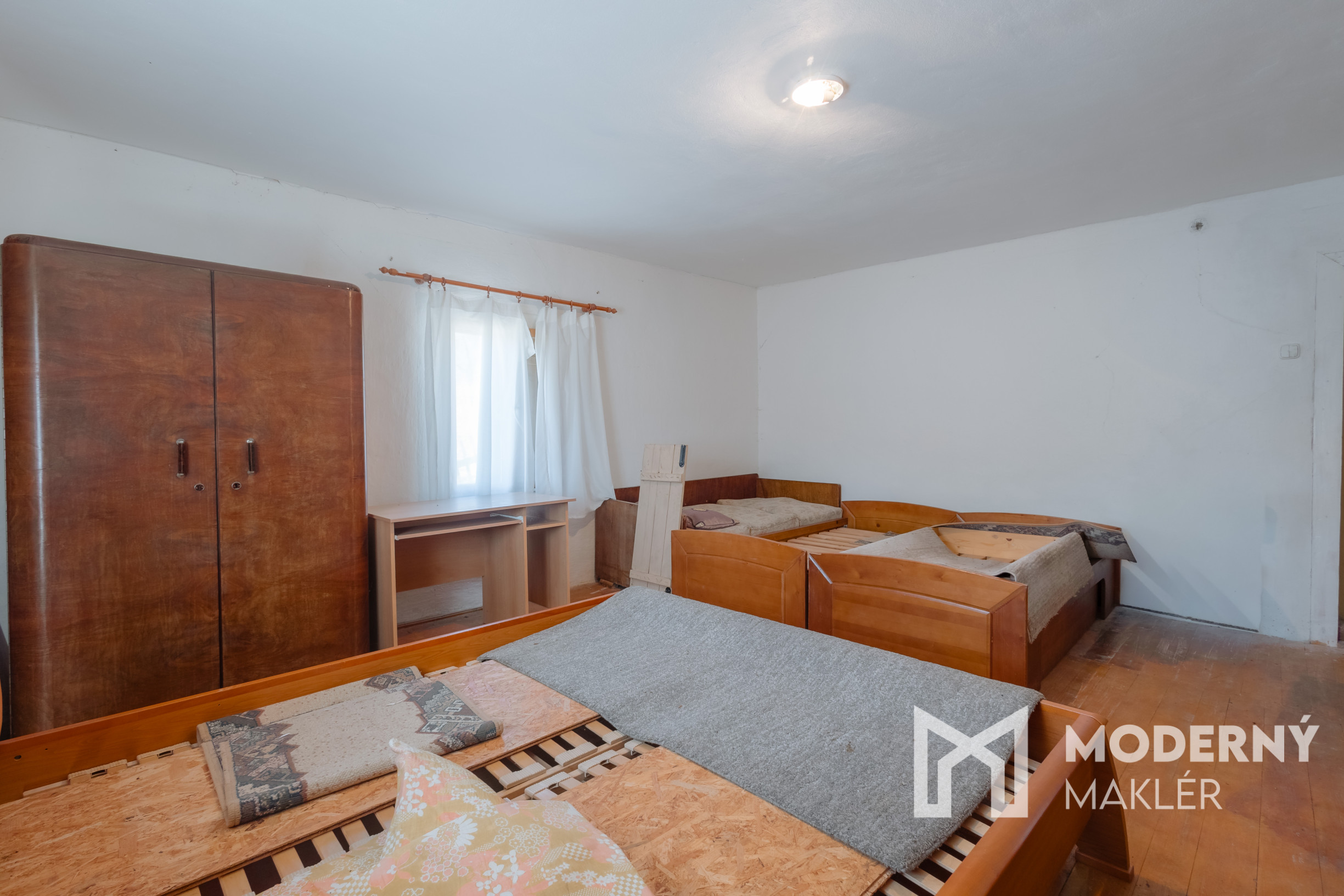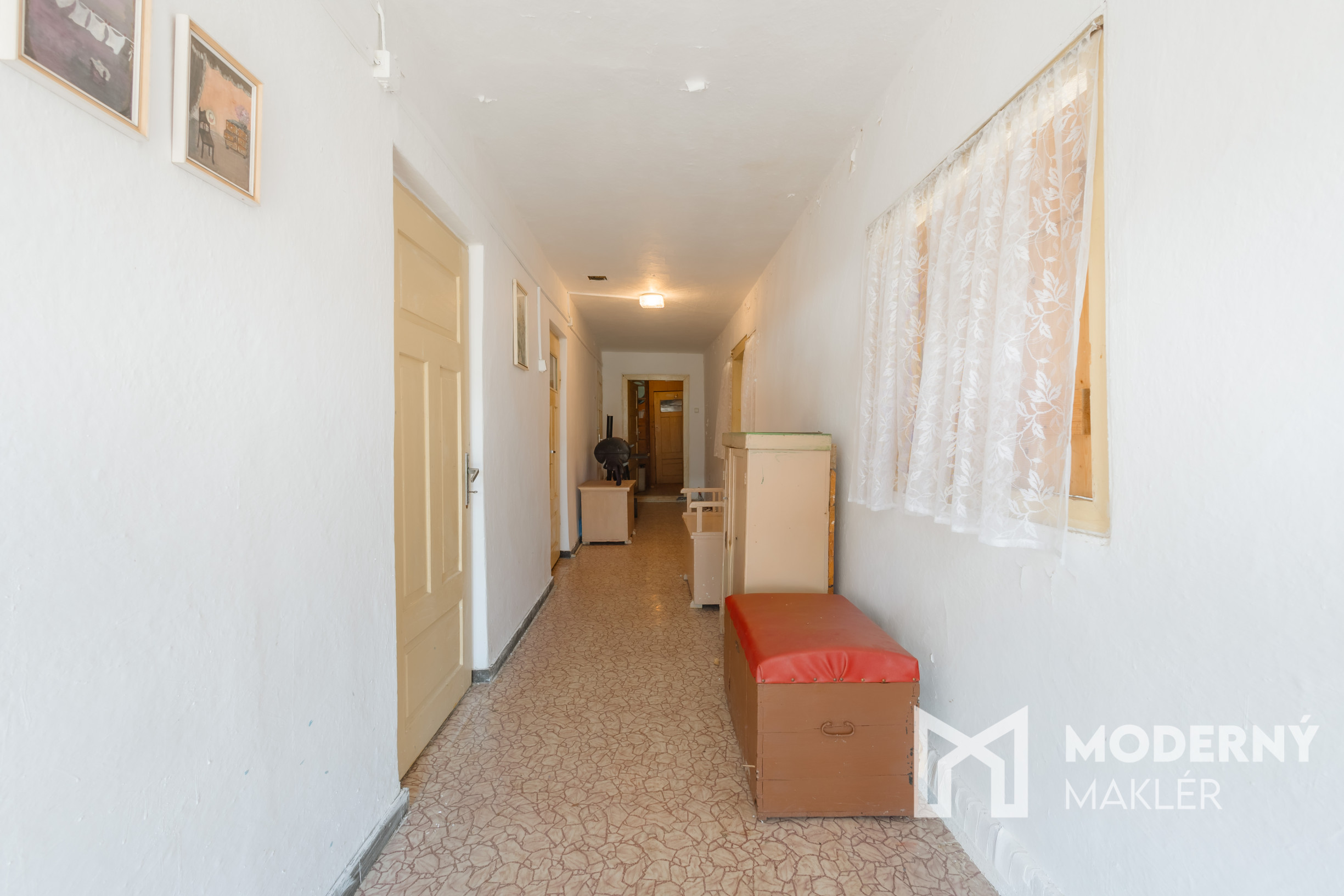 Dom sa skladá z dlhej vstupnej chodby, ktorá prehľadne rozdeľuje celý priestor. Nachádzajú sa tu tri veľké samostatné miestnosti, ktoré ponúkajú množstvo možností na funkčné využitie či už ako spálne, pracovne alebo obývacia izba. Súčasťou domu je aj veľká povala, ktorá predstavuje výnimočný potenciál na rozšírenie obytného priestoru a možno ju premeniť na ďalšiu obytnú miestnosť podľa individuálnych potrieb.
