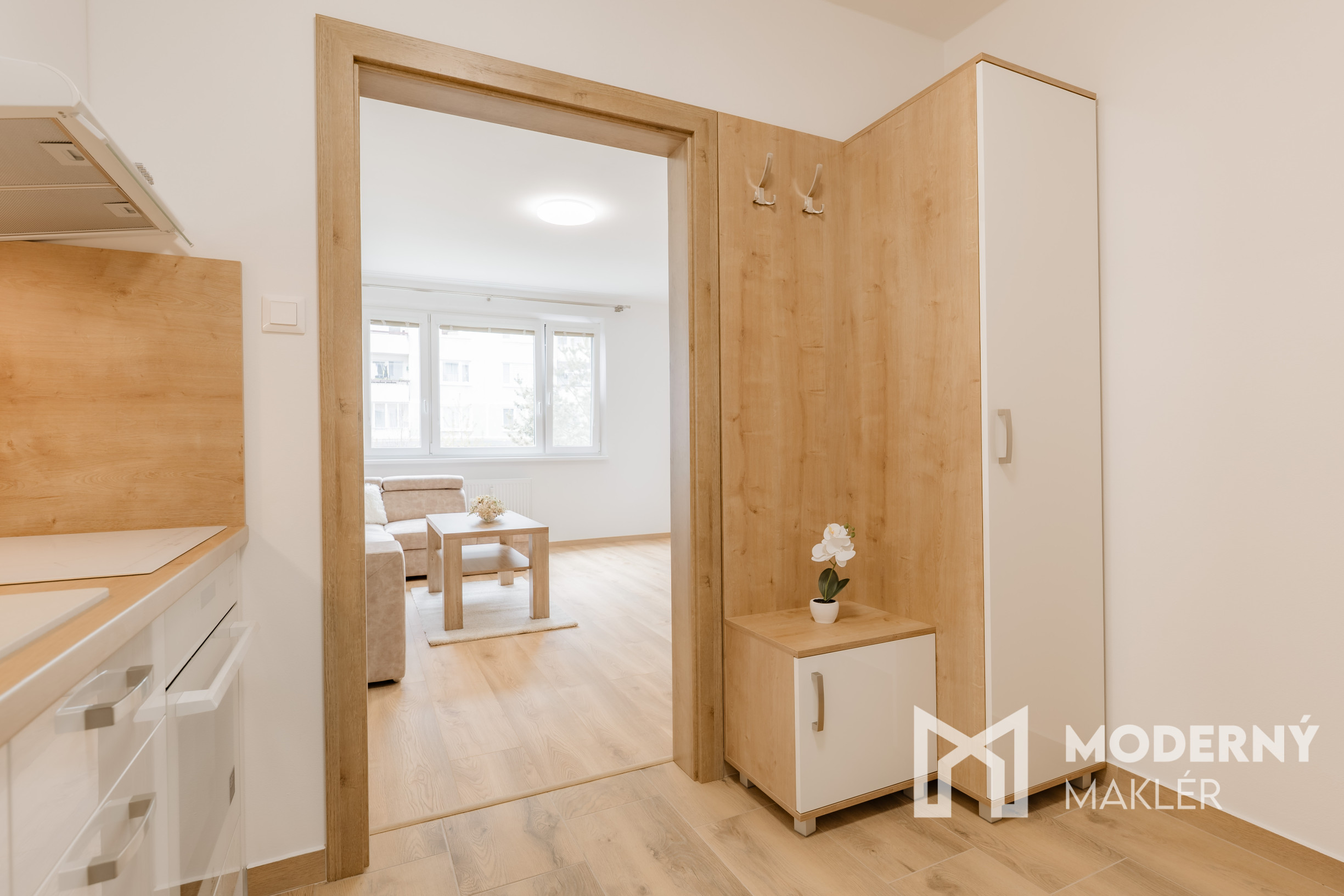 Byt sa skladá z vstupnej chodby s vstavanou skriňou, kuchyne vybavenej spotrebičmi, priestrannej obývacej izby, spálne so vstavanou skriňou, kúpeľne so sprchovým kútom a samostatného svetlého WC. Všetky priestory sú funkčne riešené a ponúkajú komfortné bývanie.