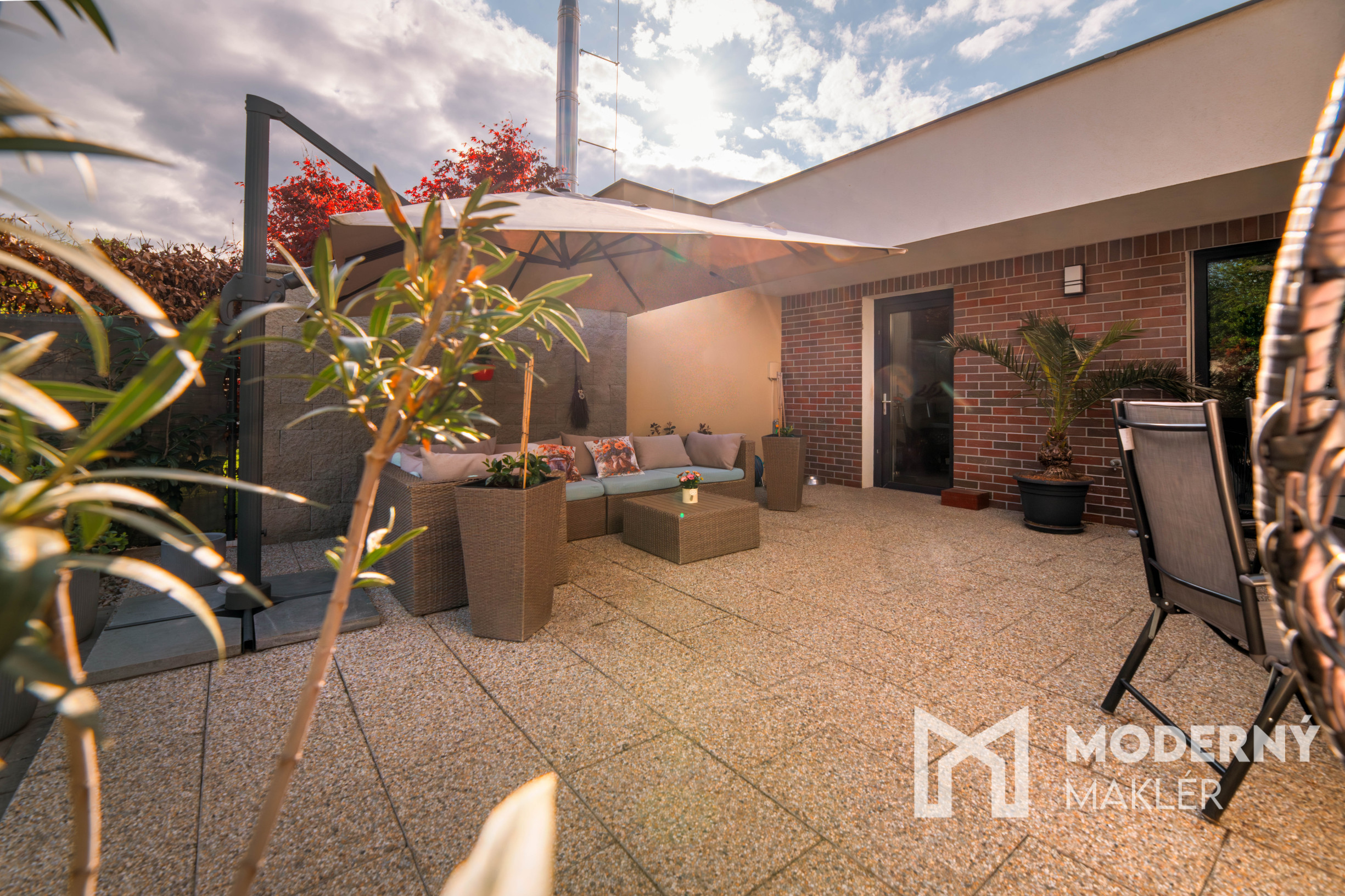Ponuka sa predáva kompletne zariadená, po dohode je možné niektoré zariadenie vypratať. Rodinný dom pozostáva zo vstupnej chodby oddelenej dverami, ktorá vedie do jednotlivých miestností. Nájdete tu dve detské izby vybavené praktickými skriňami, pohodlnú spálňu a chodbu s rolldoor, ktorá slúži ako vstup do pracovne s priamym výstupom na terasu a vnútorným prístupom do garáže. K dispozícii je kompletne vybavená kúpeľňa s WC, vaňou a sprchovým kútom. Dominantou bytu je priestranná obývacia izba prepojená s kuchyňou a jedálenským stolom, z ktorej je výstup na terasu cez francúzske okná. Na terase sa nachádza pohodlné sedenie, húpacie kreslo a jedálenský stôl so stoličkami, ideálne na relaxáciu a vonkajšie stolovanie. Nehnuteľnosť je orientovaná na juhozápad.
