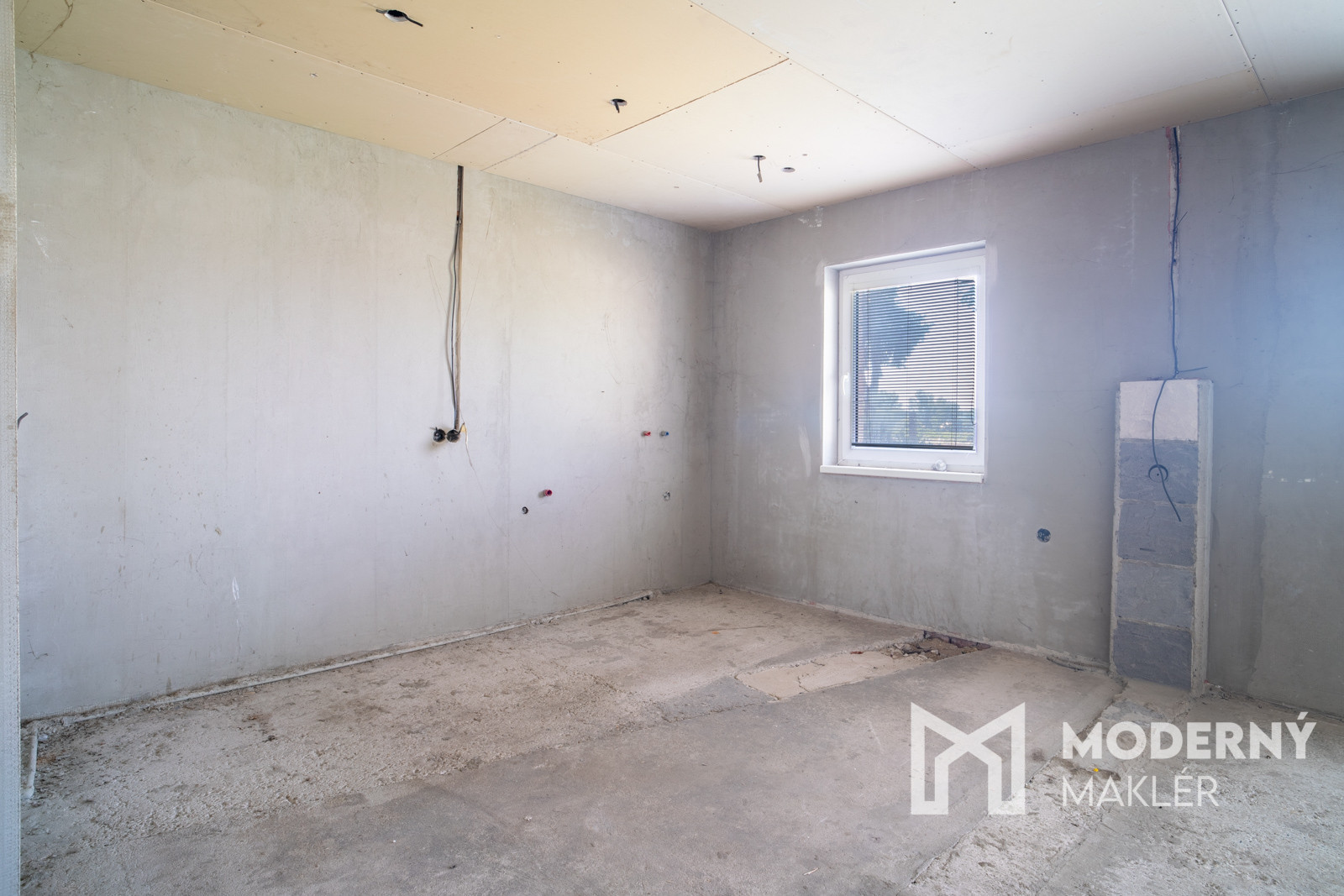 Rodinný dom má premyslenú dispozíciu, ktorá ponúka viacero možností využitia. Zo vstupnej haly vedie prístup do kúpeľne a samostatného WC na jednej strane, na opačnej strane sa nachádza nepriechodná izba vhodná ako spálňa, pracovňa či hosťovská izba. Zvyšok prízemia tvorí veľkorysý otvorený priestor, ktorý je pripravený na zariadenie kuchyne s jedálňou a obývacou časťou – ideálne miesto pre spoločné chvíle celej rodiny. Súčasťou domu je aj podkrovie, ktoré síce momentálne nemá zhotovené schodisko, no ponúka potenciál na vytvorenie ďalších obytných miestností podľa vlastných predstáv. K nehnuteľnosti navyše prislúchajú dve samostatné miestnosti, ktoré je možné funkčne prepojiť s hlavnou obytnou časťou a rozšíriť tak obytný priestor domu.