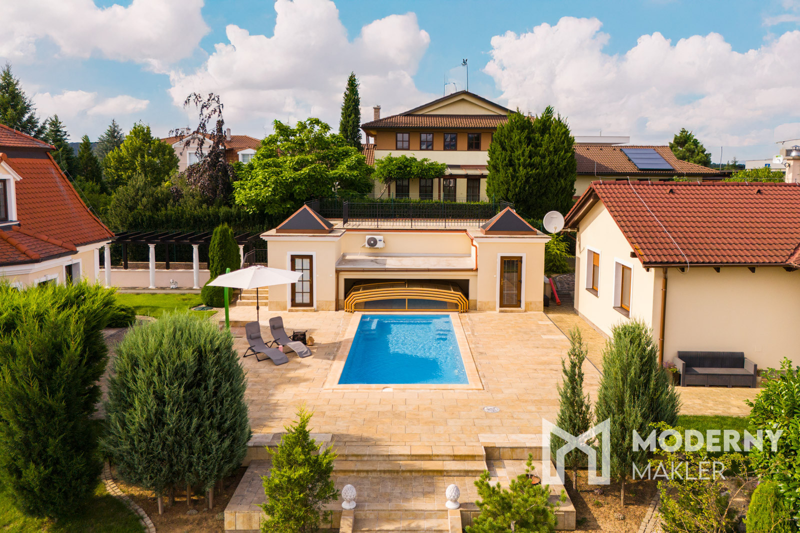 Moderný maklér ponúka na predaj nadštandardný rodinný dom s bazénom v obľúbenej obci Soblahov pri Trenčíne. Nehnuteľnosť spája komfort, veľkorysý priestor, kvalitné materiály a pokojné bývanie s rýchlou dostupnosťou do mesta. Dom ponúka wellness zázemie a súkromné fitness centrum, ktoré prinášajú atmosféru dovolenkového bývania priamo doma.