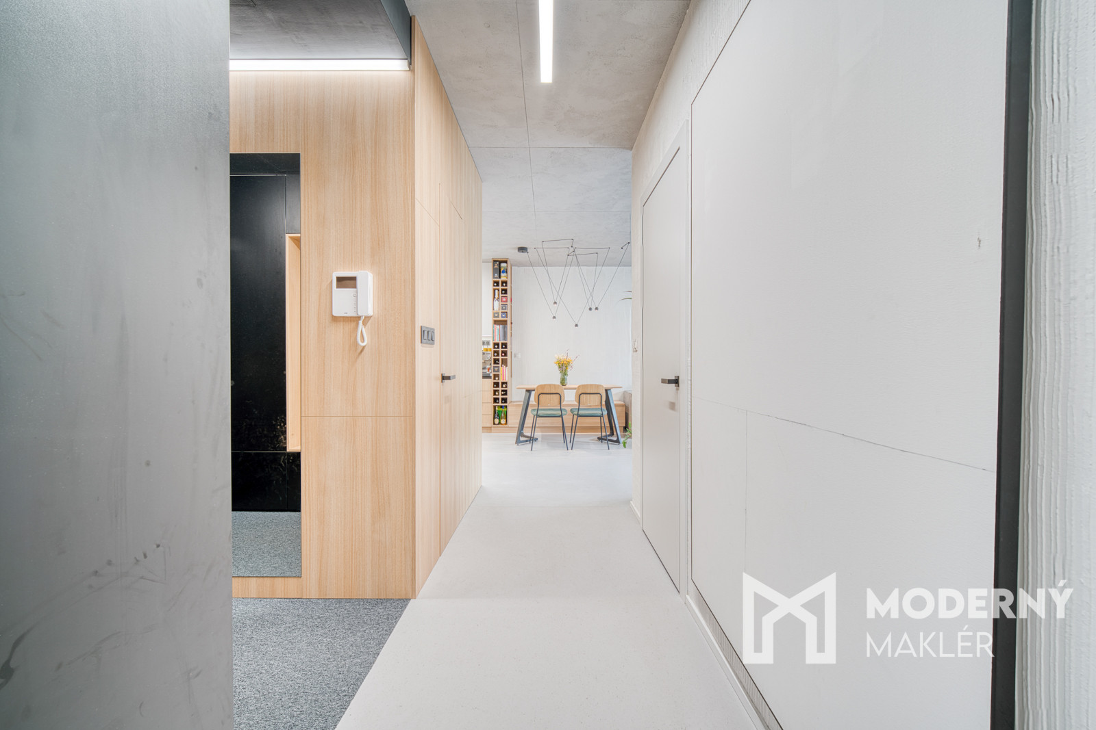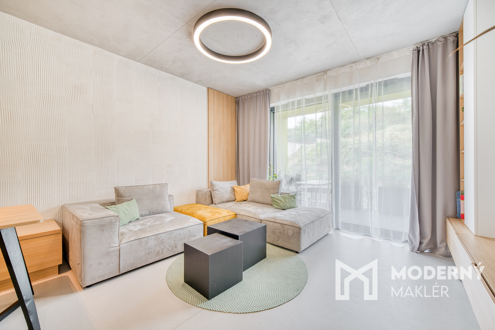 Byt sa predáva kompletne zariadený nábytkom na mieru. Bol navrhnutý architektonickým štúdiom IAVD architekt, ktorý vytvoril nadčasový dizajn bytu s funkčnosťou a premyslenými detailami. Každý centimeter priestoru je využitý efektívne a s dôrazom na estetiku. V kuchyni sa nachádza svetlá kuchynská linka so spotrebičmi (indukčná varná doska, digestor, teplovzdušná rúra, umývačka riadu, chladnička). Obývacia časť dotvára moderný vzhľad kuchyne a poskytuje ideálny priestor na filmový zážitok. Kuchyňa spojená s obývačkou ponúka koberce a stoličky značky KAVE a konferenčný stolík značky MUZZA. V kúpeľni sa nachádza sprchový kút s dizajnovým umývadlom, skrinkami s uložným priestorom a zrkadlom. Spálňa je vybavená pohodlnou posteľou s 2 šatníkovými skriňami. Druhá izba poskytuje priestor pre deti a ich kreatívne využitie času. Práčka so sušičkou sa nachádzajú v samostatnej miestnosti.