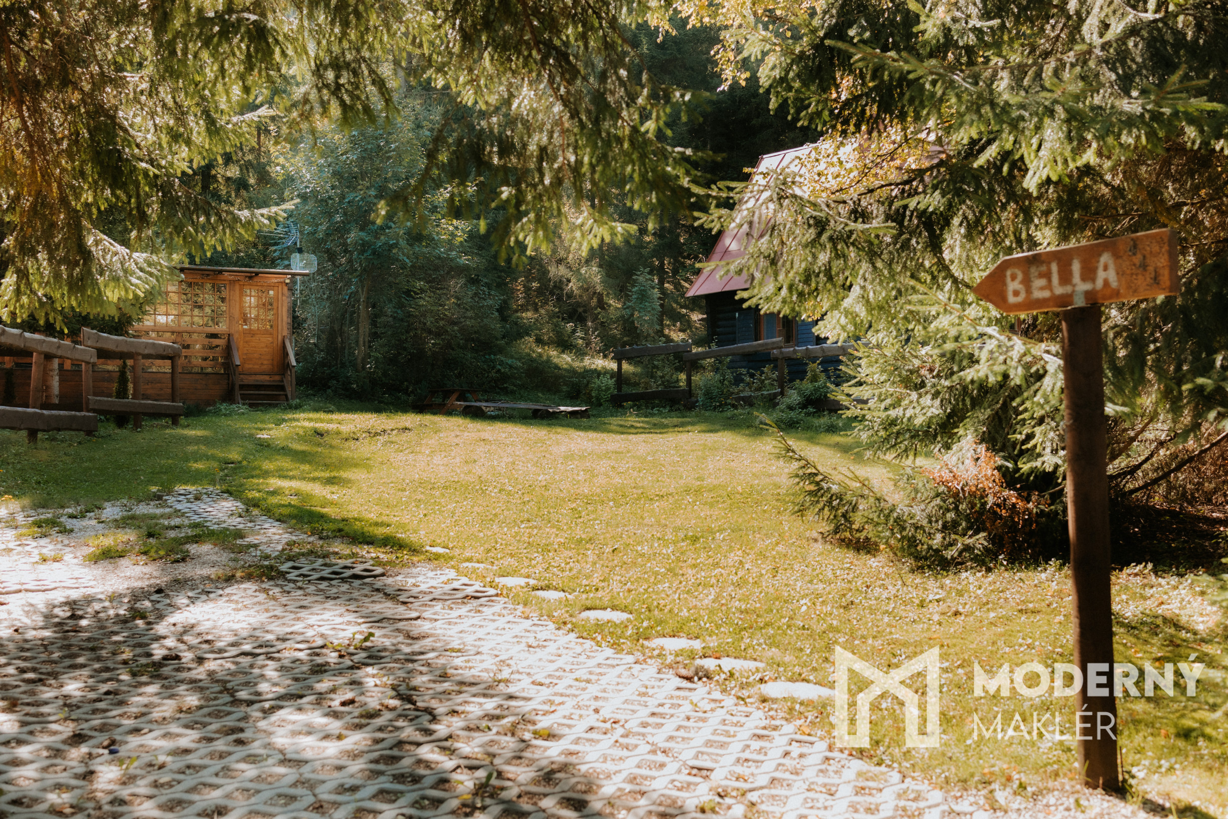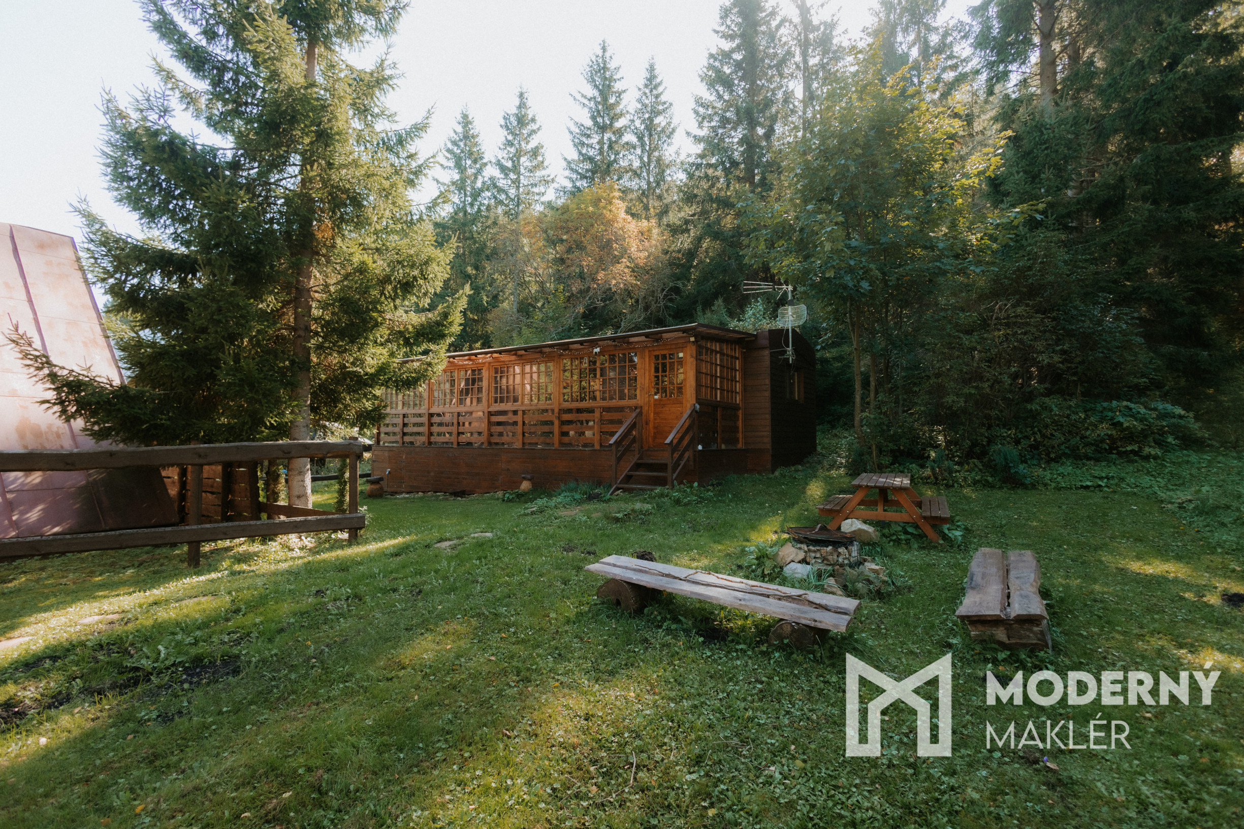 Modulárna drevostavba disponuje priestrannou terasou, ktorá slúži nielen ako vstup do objektu, ale zároveň aj ako spoločenská miestnosť. Je vybavená infra saunou a poskytuje príjemný priestor na oddych. V interiéri sa nachádza obývacia izba spojená s kuchyňou, kúpeľňa s toaletou a samostatné spálne, pričom v každej sú umiestnené lôžká pre dve osoby. Pozemok pod lesom je upravený, s pôvodnými stromami, ohniskom a posedením. Pre lyžiarov je k dispozícii praktická lyžiareň.