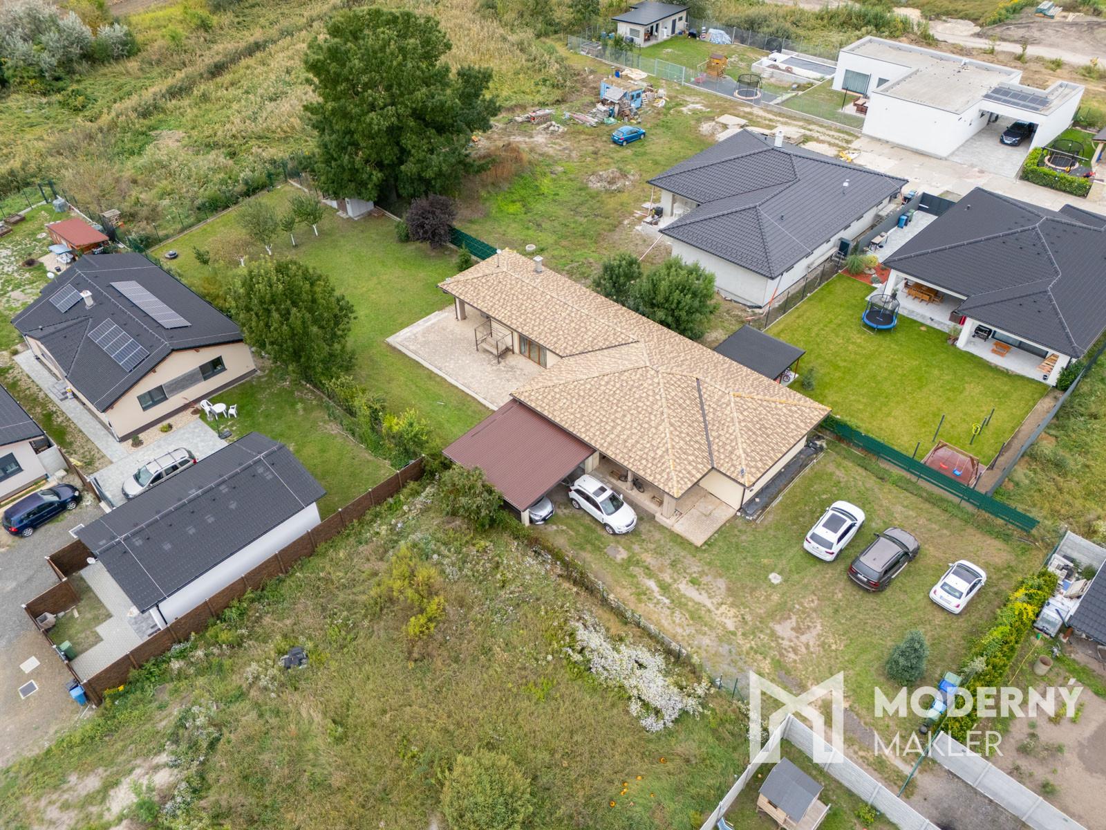Jednopodlažný rodinný dom postavený v roku 2016 predstavuje samostatne stojaci objekt s moderným technickým vybavením a premysleným riešením. Konštrukcia je montovaná, drevostavba s kvalitným zateplením, ktoré prispieva k výbornej energetickej efektívnosti. Strecha je sedlového typu, pokrytá betónovou škridlou a doplnená účinnou izoláciou. Dom je osadený trojkomorovými plastovými oknami s interiérovými žalúziami a vybavený bezpečnostnými vstupnými dverami. Prípojka na vodu je riešená prostredníctvom obecného vodovodu, doplneného o vlastnú studňu. Odpadové vody sú odvádzané do žumpy. Vykurovanie zabezpečuje elektrické podlahové kúrenie napojené na elektrický kotol, ktorý zároveň slúži na ohrev úžitkovej vody. V spálni sa nachádza klimatizácia, ktorá zvyšuje komfort bývania počas celého roka. Dom disponuje predprípravou na krb – s možnosťou jeho inštalácie vo vnútri aj na terase. Bezpečnosť nehnuteľnosti zvyšuje kamerový systém v kombinácii s elektronickým zabezpečením (alarm).