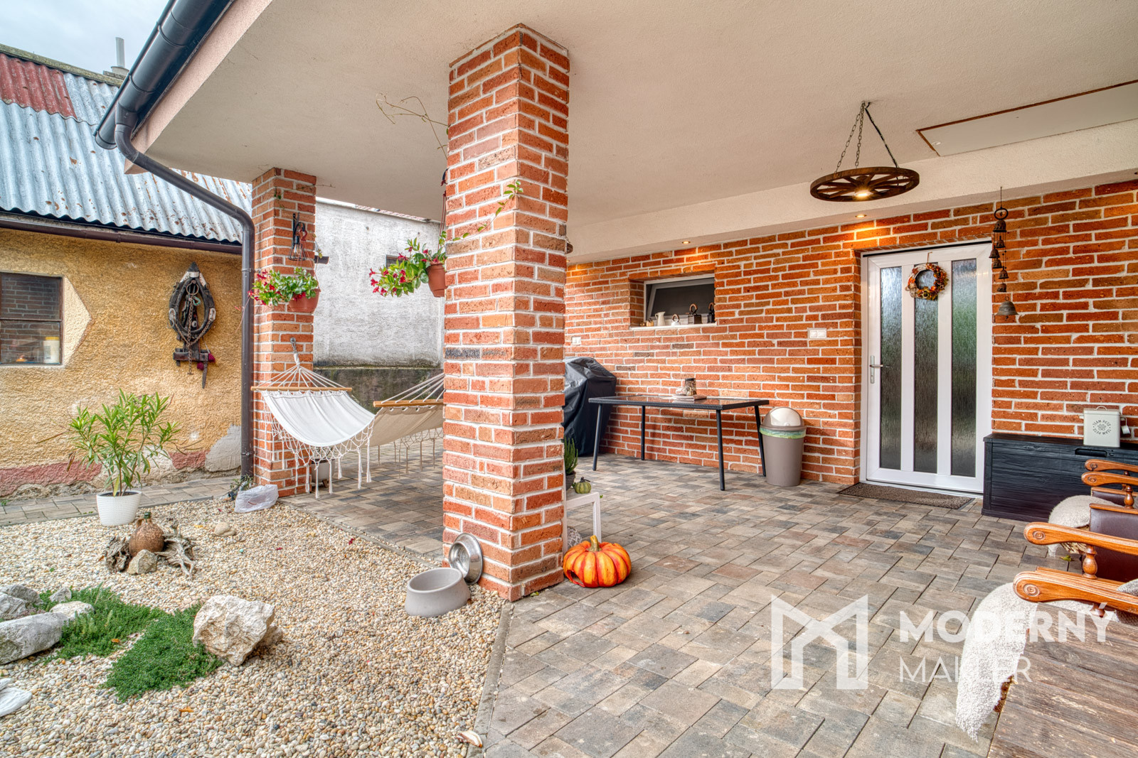 Dom sa predáva čiastočne zariadený, vrátane modernej kuchynskej linky so vstavanými spotrebičmi a nábytku podľa dohody s majiteľom. Na pozemku sa nachádza samostatne stojaca garáž a krytá terasa, ktoré poskytujú dostatok priestoru pre parkovanie, grilovanie či rodinné posedenia. Pozemok je oplotený, upravený a udržiavaný, pripravený na okamžité bývanie bez ďalších nákladov.