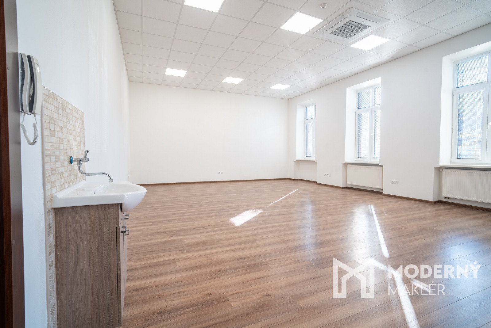 Zo vstupných dverí prejdete cez menšiu predsieň s predprípravou na kuchynku a samostatným WC priamo do kancelárie. Priestor sa prenajíma nezariadený, čo poskytuje nájomcovi úplnú slobodu pri zariaďovaní podľa vlastných predstáv a potrieb.