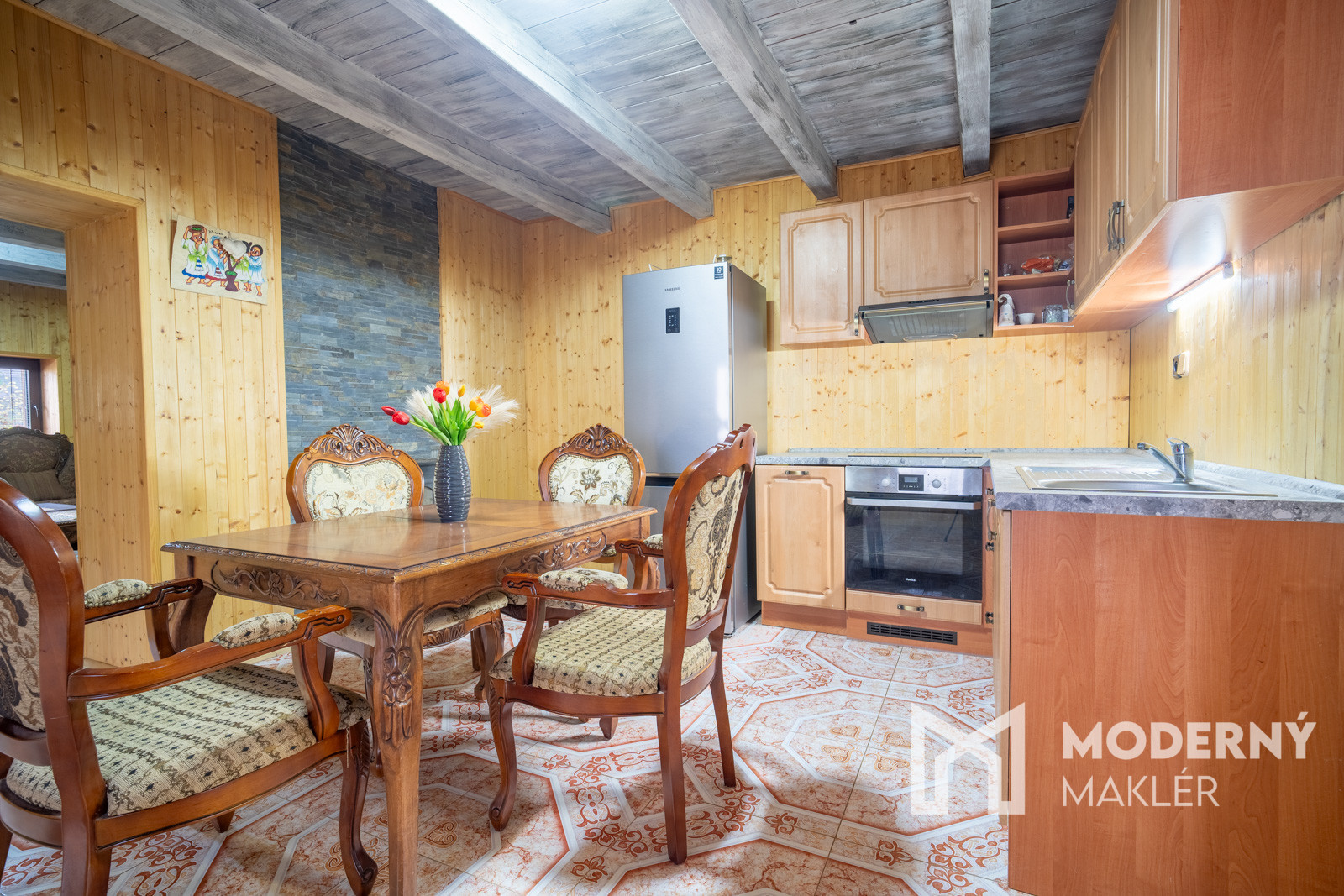 Chata sa predáva kompletne zariadená s autentickým historickým vyrezávaným nábytkom, ktorý dodáva priestorom jedinečný charakter a atmosféru. Kuchyňa je plne vybavená kuchynskou linkou aj všetkými potrebnými spotrebičmi pre pohodlné bývanie. K dispozícii sú dve funkčné kúpeľne, každá vybavená sprchovacím kútom, umývadlom a WC. Celkové zariadenie chaty umožňuje okamžité nasťahovanie bez potreby ďalších investícií do nábytku či vybavenia.