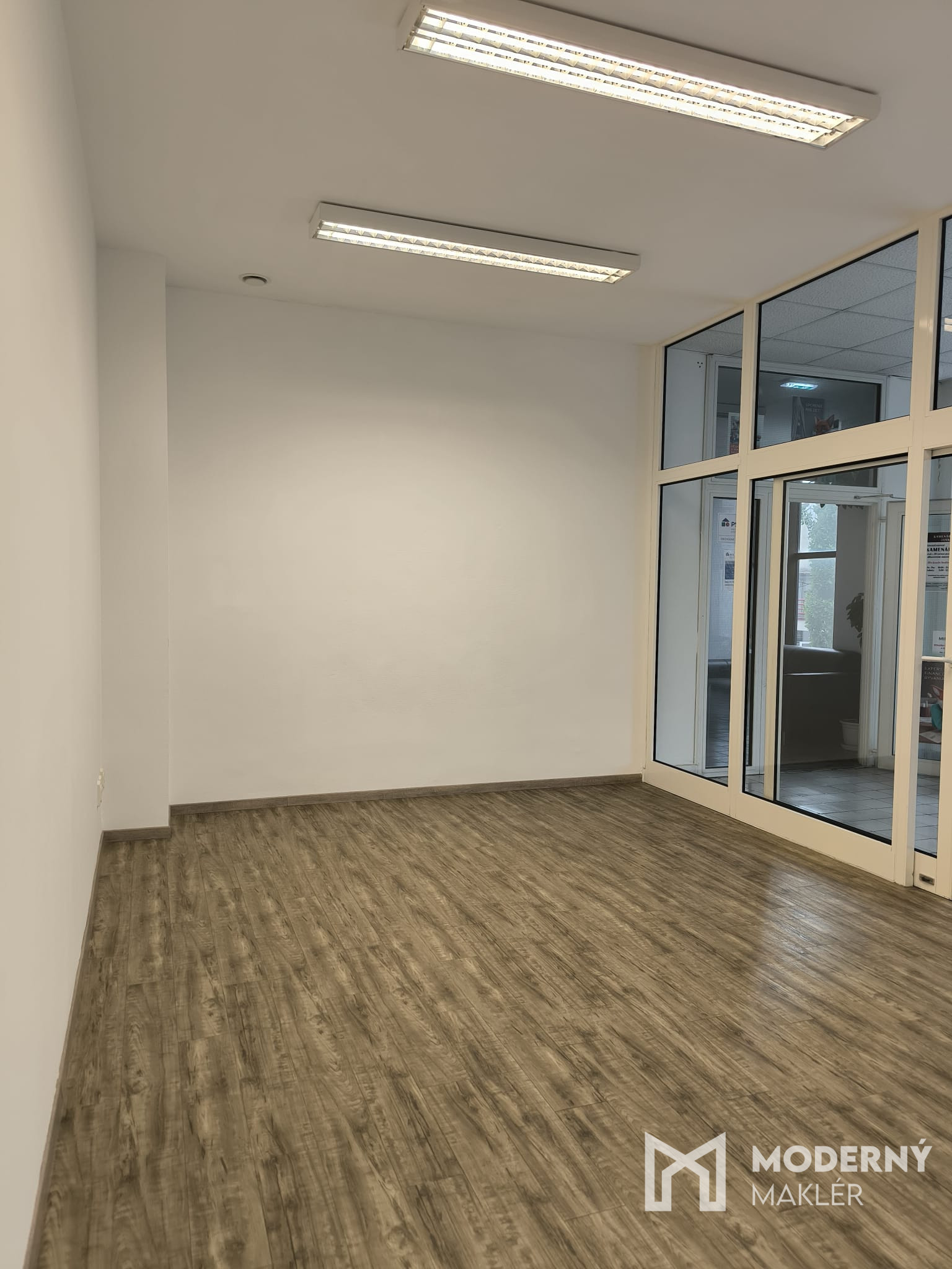 Priestory disponujú vinylovou podlahou na chodbe aj vo vnútri. Dostatok prirodzeného svetla zabezpečujú presklené steny v prednej časti. V zadnej miestnosti sa nachádza umývadlo a k priestorom prislúchajú tiež dámske a pánske toalety a kuchynka, ktoré nájdete na poschodí.
