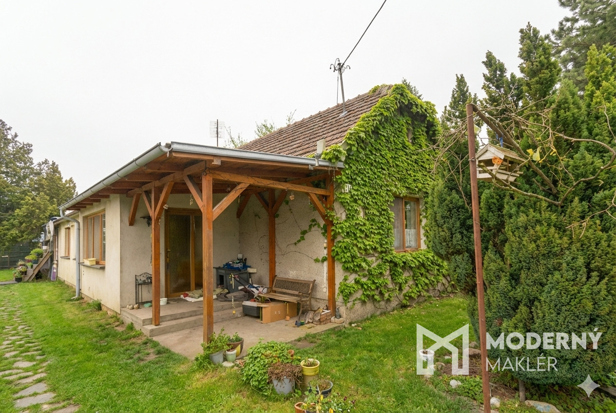Dom sa môže pochváliť praktickým a priestranným riešením na jednom podlaží. Vstup do domu vedie cez vstupnú chodbu, odkiaľ sa pokračuje na uzatvorenú vyhrievanú verandu, ktorá poskytuje príjemný priestor počas celého roka. V hlavnej časti domu sa nachádza obývacia izba, ktorá prirodzene prechádza do prednej izby slúžiacej ako spálňa. Kuchyňa je vybavená praktickou rohovou kuchynskou linkou a ponúka dostatočný priestor na prípravu jedál. V dome sa nachádza rozľahlá kúpeľňa s rohovou vaňou, umývadlom a toaletou, doplnená ohrievačom vody pre pohodlie obyvateľov. V zadnej časti domu je umiestnená ďalšia izba spolu s predpripravenou miestnosťou, chodbou a kotolňou, čo poskytuje dodatočné možnosti využitia priestoru. K nehnuteľnosti prislúcha samostatná stavba so súpisným číslom, ktorá slúži ako letná kuchyňa s podpivničením. Budova je plne napojená na elektrinu, vodu a septik, čo umožňuje jej celoročné využívanie. Pozemok je prístupný zo severovýchodného smeru, zatiaľ čo dvor má príjemnú juhozápadnú orientáciu, ktorá zabezpečuje optimálne osvetlenie a slnečné podmienky počas dňa.