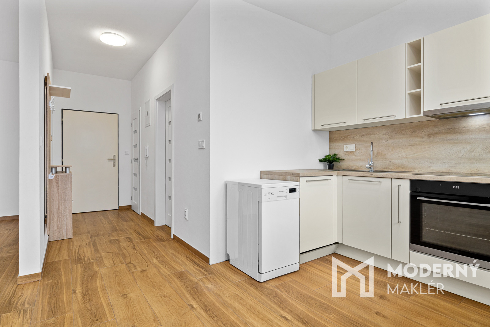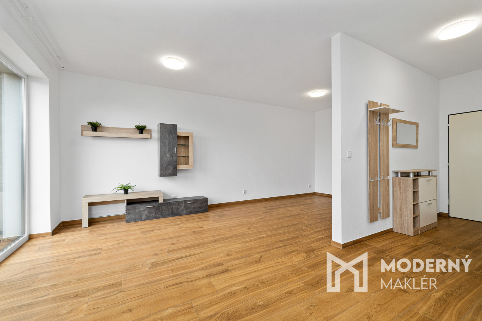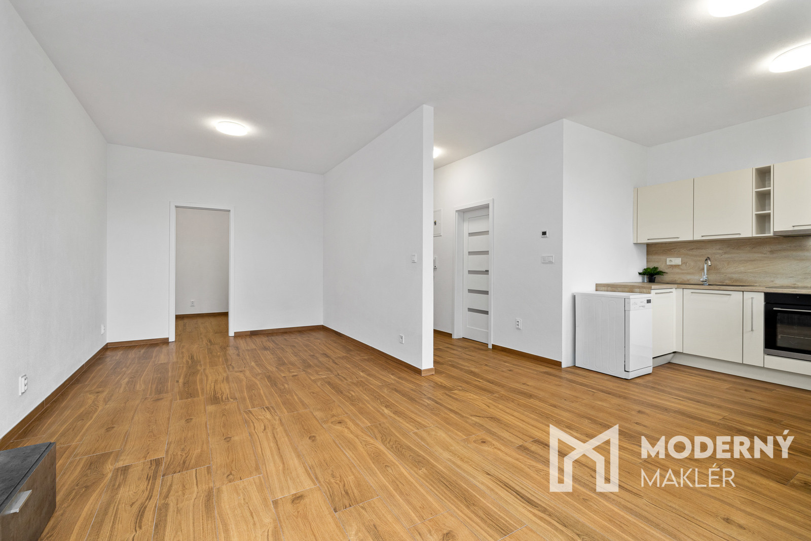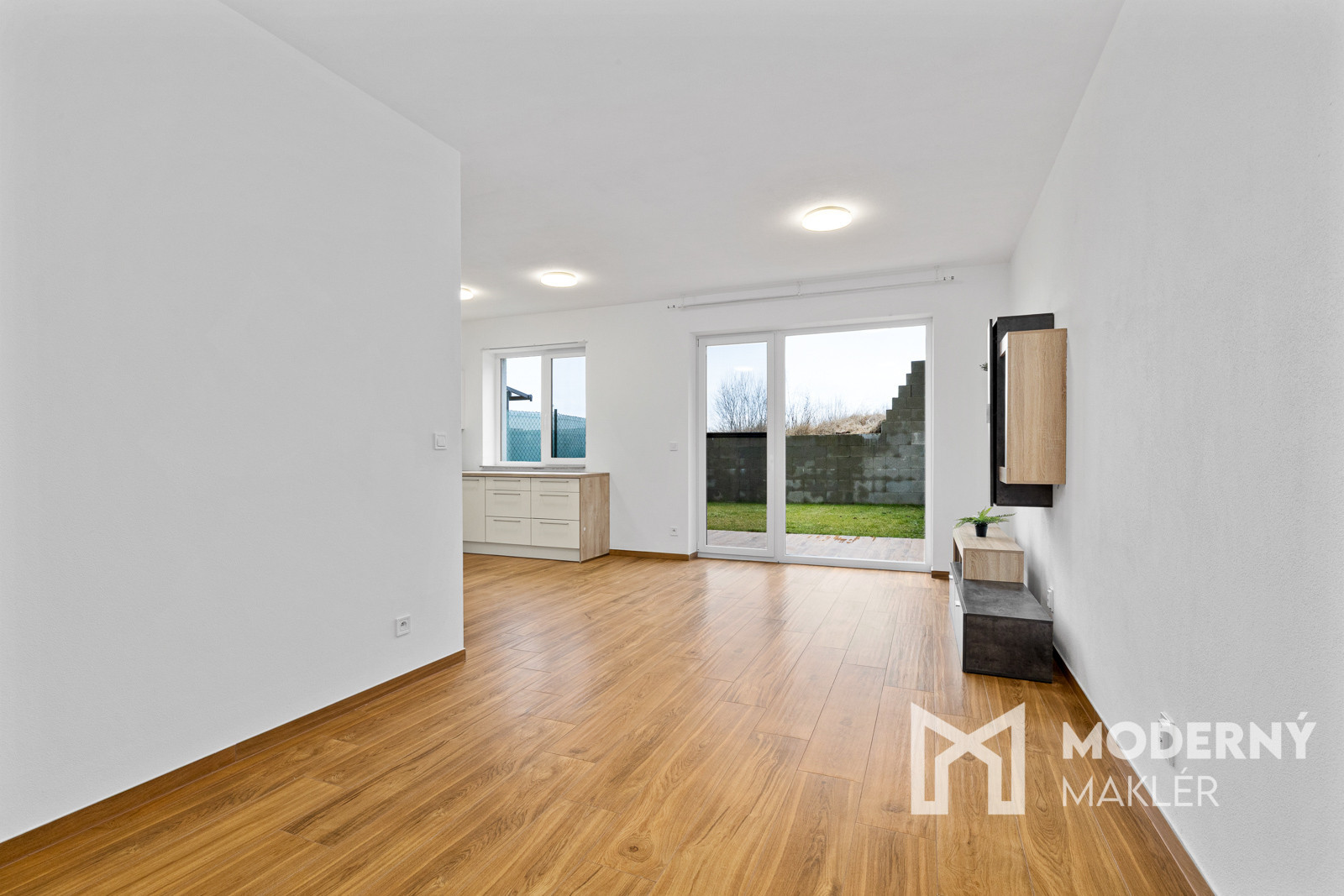 Nehnuteľnosť sa skladá zo vstupnej haly, z ktorej sa dostanete do priestrannej obývacej izby spojenej s kuchyňou a s priamym výstupom do záhrady. Z obývacej izby je k dispozícii vstup do veľkého šatníka. Byt ponúka možnosť prerobenia na dvojizbové riešenie podľa potrieb majiteľa.