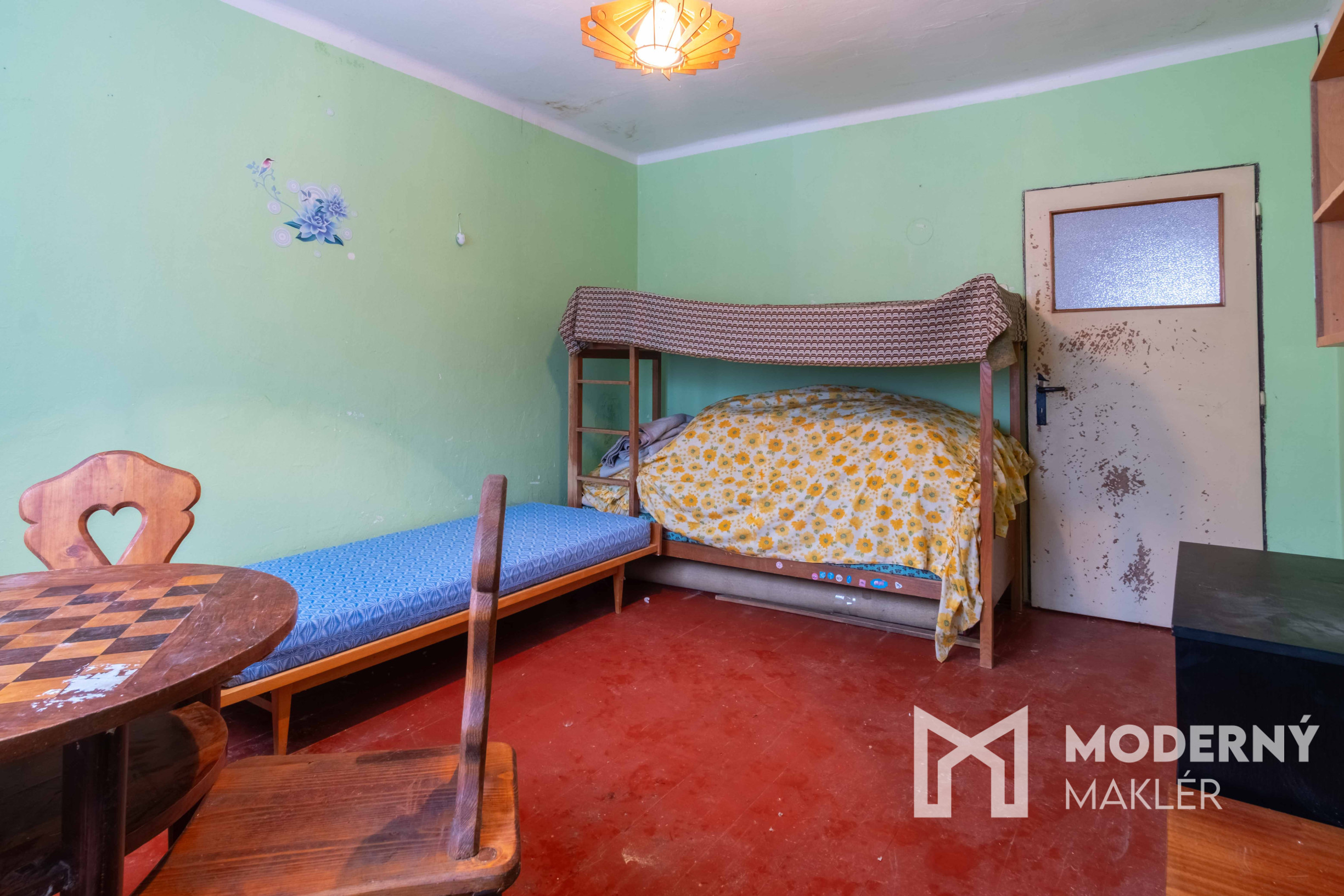 Nehnuteľnosť sa skladá zo vstupnej chodby, z ktorej sa dostanete do malého šatníka a následne do kuchyne. Cez kuchyňu prejdete do obývacej izby s juhovýchodnou orientáciou, ktorá zabezpečuje príjemné prirodzené osvetlenie počas celého dňa. Po pravej strane sa nachádza ešte jedna izba, praktická špajza pre uskladnenie, samostatné WC a kúpeľňa. K domu prináleží pekný slnečný pozemok s juhovýchodnou orientáciou, ktorý poskytuje dostatok svetla a vytvára príjemné prostredie pre relaxáciu.