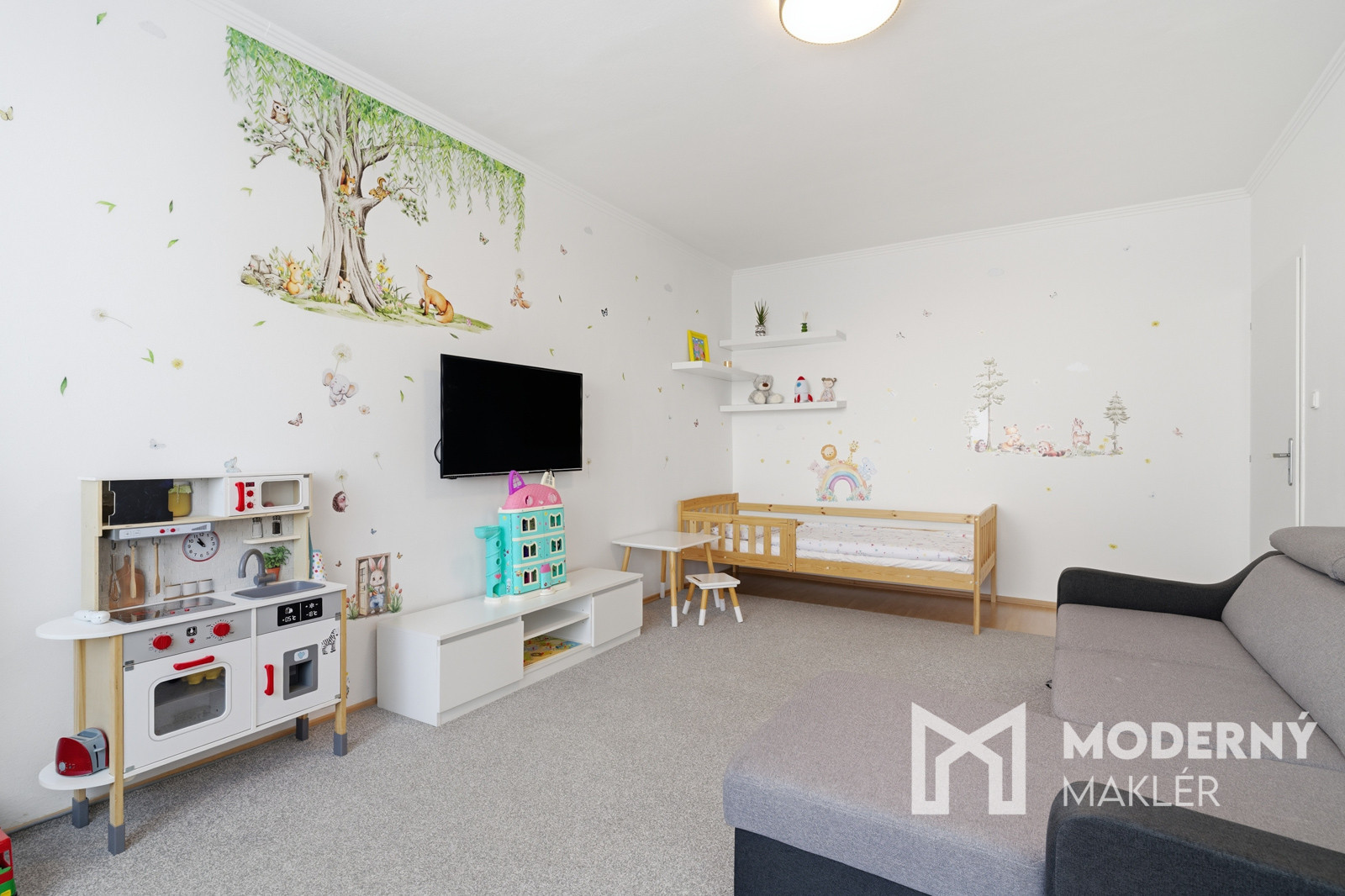 Nehnuteľnosť sa skladá zo vstupnej chodby, z ktorej sa dostanete na samostatnú toaletu a do kúpeľne s vaňou. Ďalej nájdete kuchyňu s praktickou komorou a na druhej strane sa nachádza priestranná veľkometrážna spálňa. Byt je doplnený detskou izbou a obývacou izbou s východom na balkón. Nehnuteľnosť má orientáciu na východ aj západ, čo zabezpečuje dostatok prirodzeného svetla počas celého dňa.