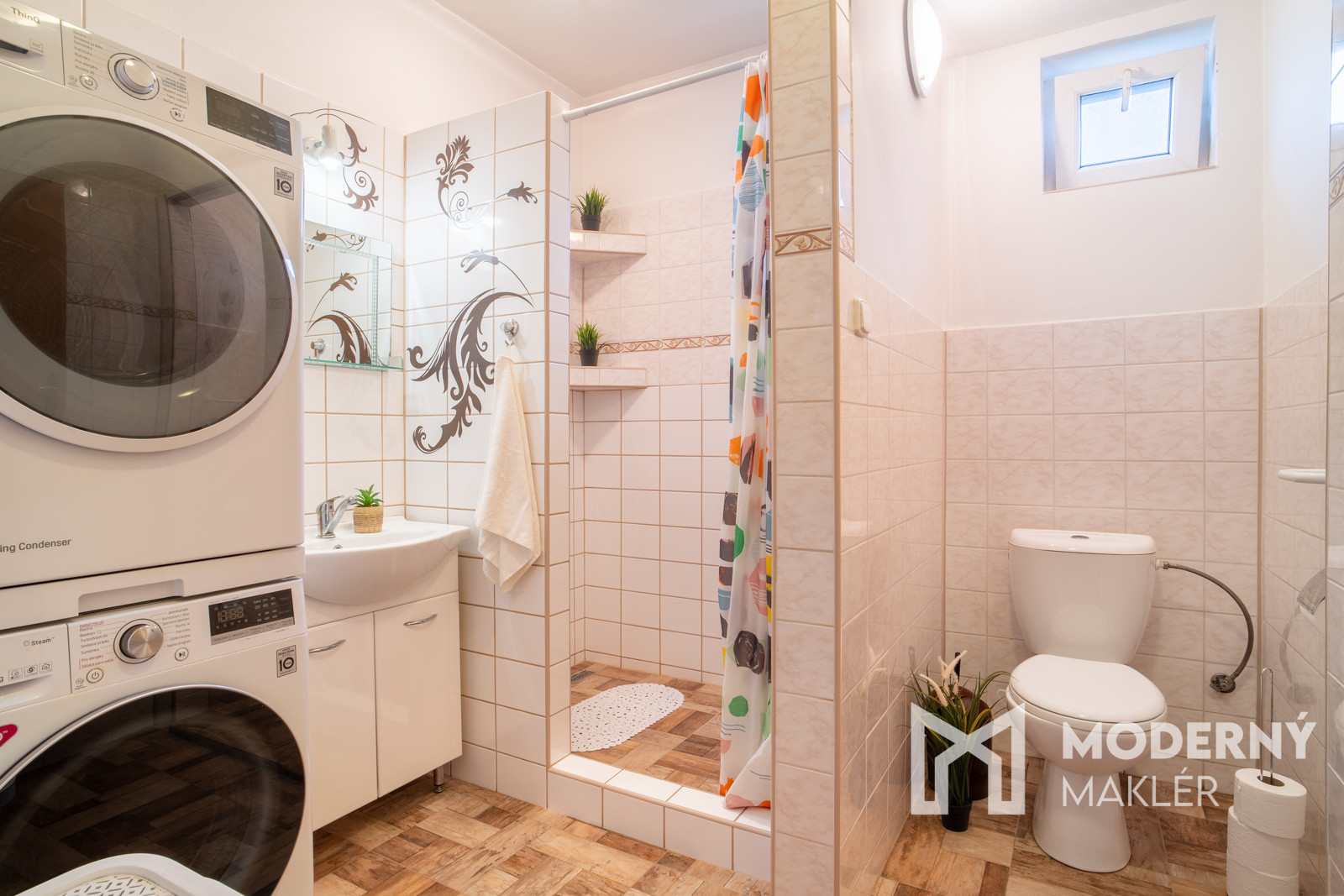 Na poschodí sa nachádza kúpeľňa a tri izby – dve za kúpeľňou a jedna na ľavej strane od schodiska. Podkrovie s rozlohou 30 m² je možné zobytnit. Celkovo dom ponúka štyri izby, dve kúpeľne, technickú miestnosť, priestrannú obývačku s kuchyňou a praktickú loggiu pri vstupe.