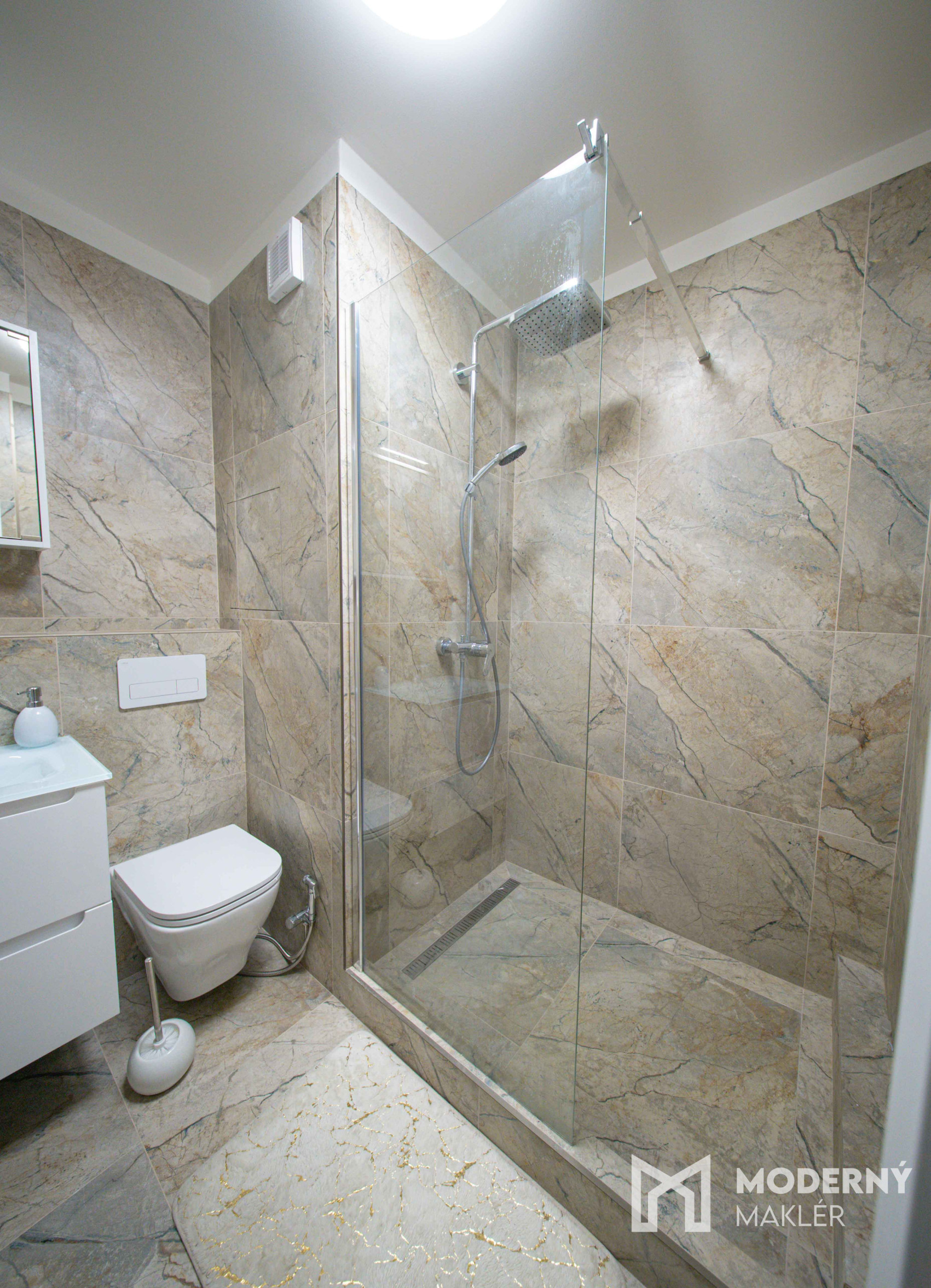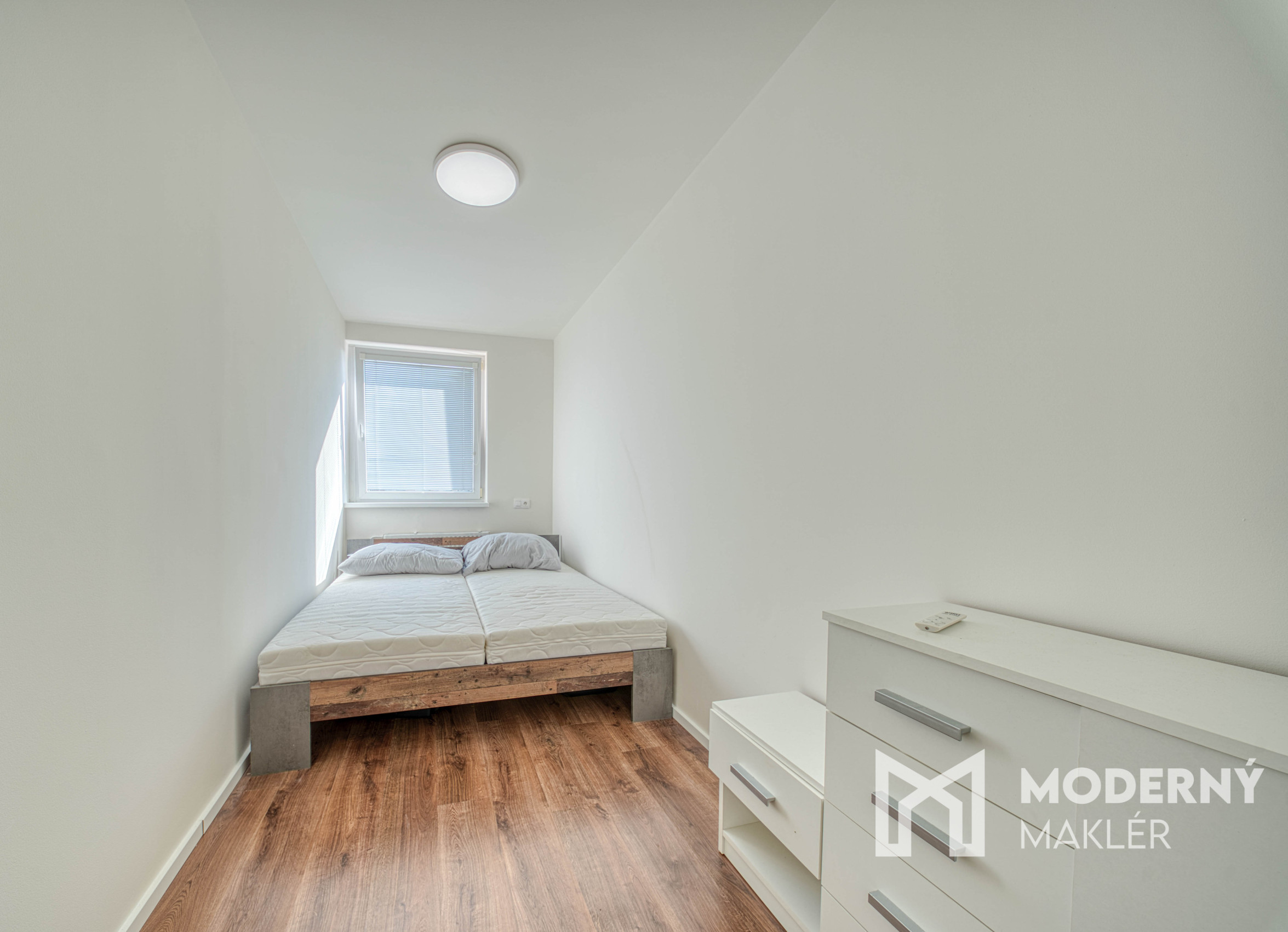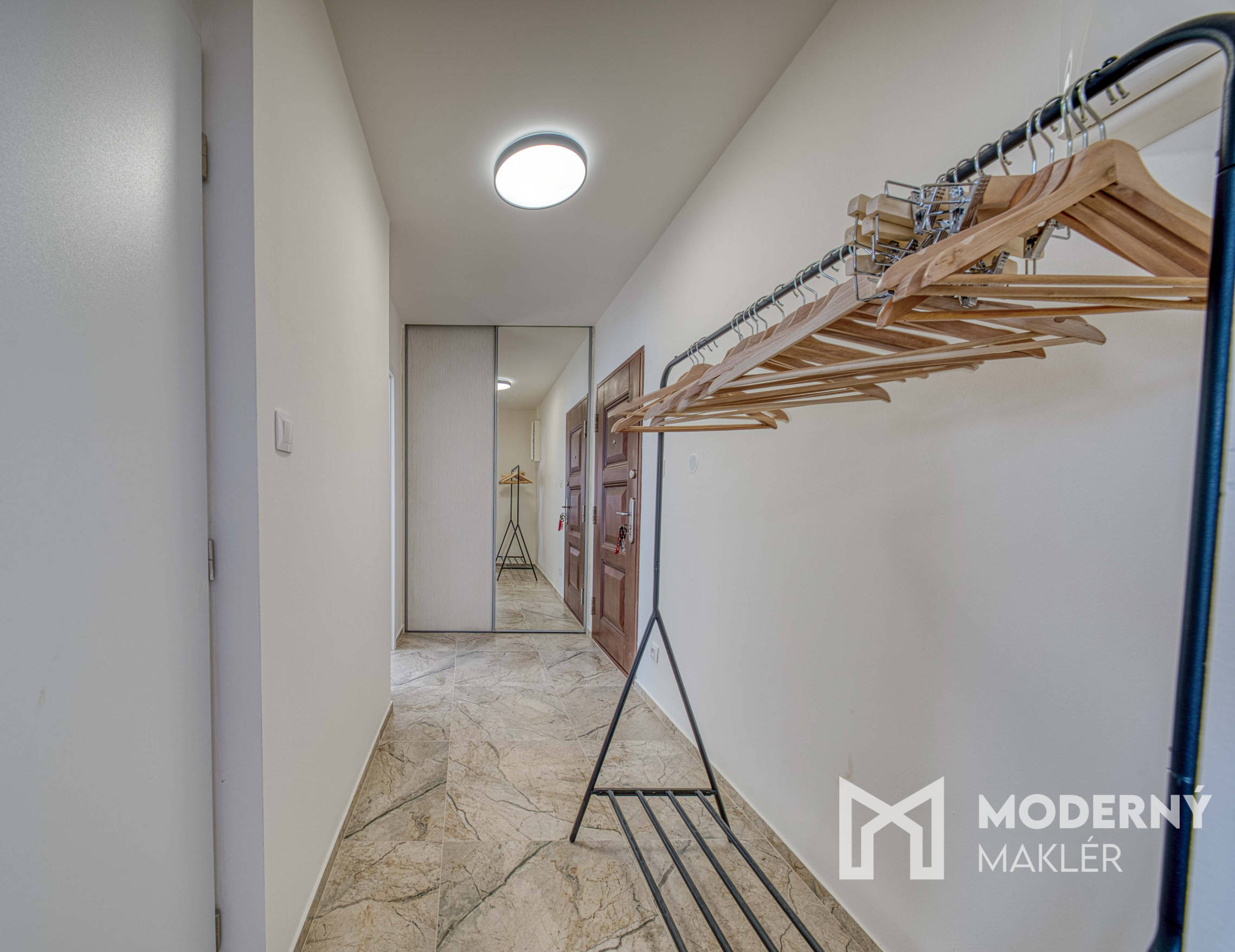 Nehnuteľnosť sa skladá zo vstupnej chodby so vstavanou skriňou, z ktorej máte priamy prístup do menšej spálne. Z chodby sa dostanete aj do krásnej kúpeľne vybavenej veľkou sprchou, WC a umývadlom. Chodba ďalej vedie do priestrannej obývacej miestnosti, z ktorej máte vstup na loggu a do kuchyne.