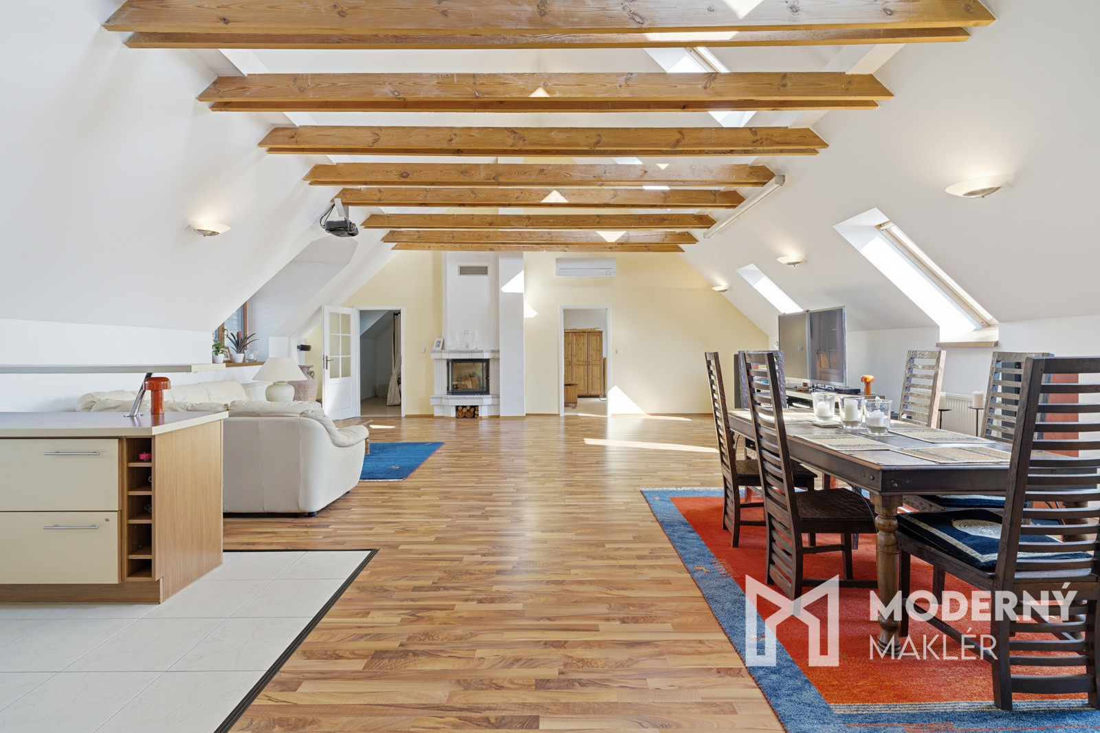 Horné podlažie funguje ako plnohodnotná bytová jednotka. Nachádza sa tu ďalšia kuchyňa spojená s obývacou izbou, čo zabezpečuje úplnú nezávislosť poschodia. Nočná časť pozostáva zo štyroch svetlých izieb a dvoch samostatných kúpeľní, ktoré eliminujú ranné zápchy v rodine.