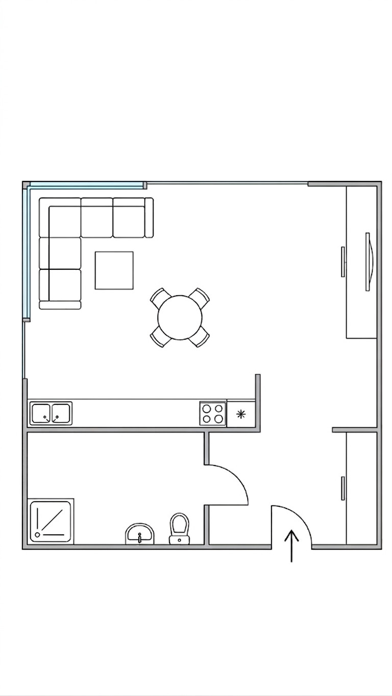 Nehnuteľnosť pozostáva z prakticky riešenej predsiene, kúpeľne s WC a priestrannej obytnej miestnosti, ktorá zahŕňa kuchyňu a obývačku slúžiacu zároveň ako spálňa. Byt je orientovaný na juhozápad, čo zabezpečuje príjemné prirodzené osvetlenie počas celého dňa.