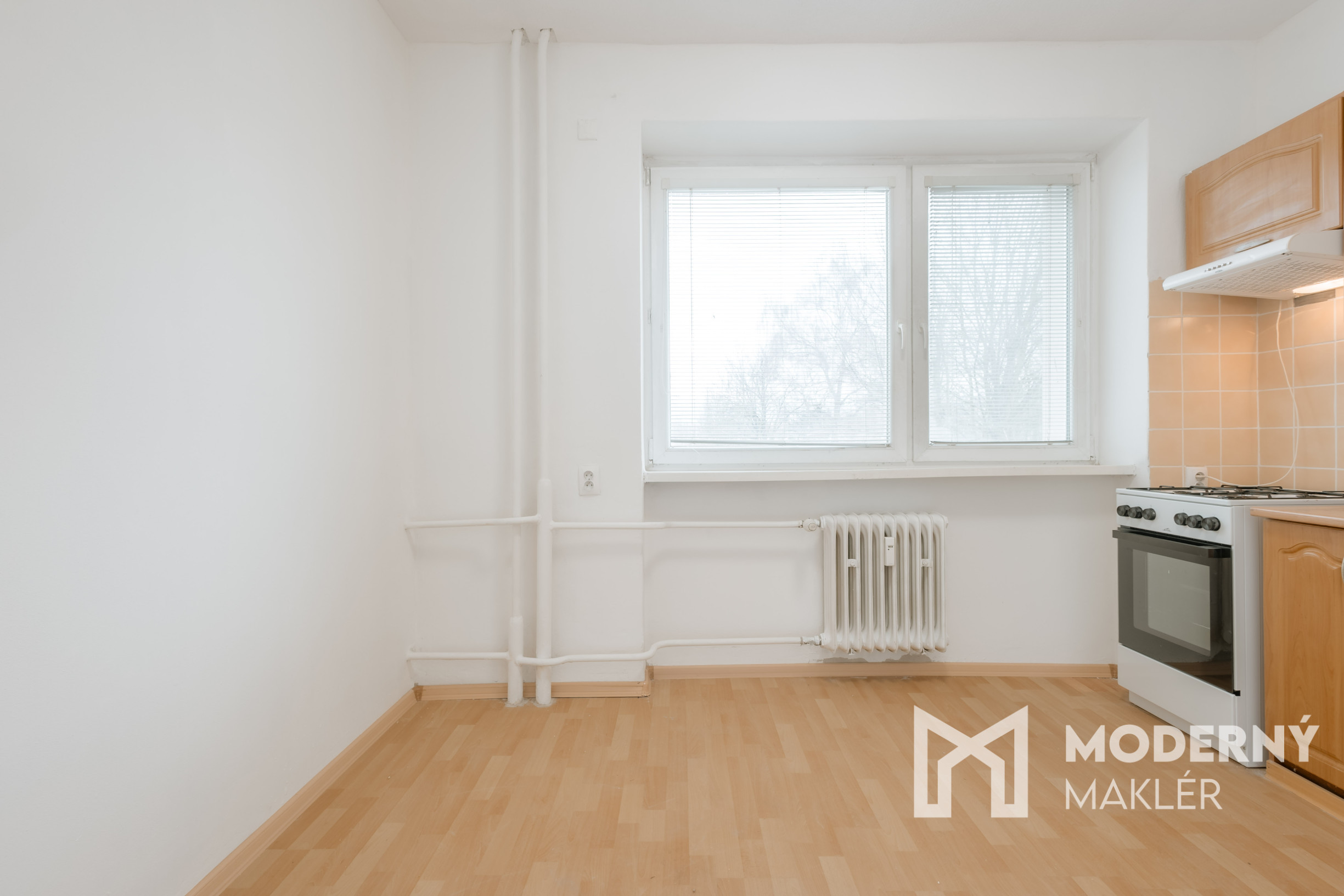 Nehnuteľnosť sa skladá zo vstupnej chodby. Ďalej sa tu nachádza kúpeľňa s WC, praktická kuchyňa a samostatná izba s priamym výstupom na loggiu. Obytné priestory sú orientované na východnú stranu, čím je zabezpečené príjemné ranné osvetlenie.