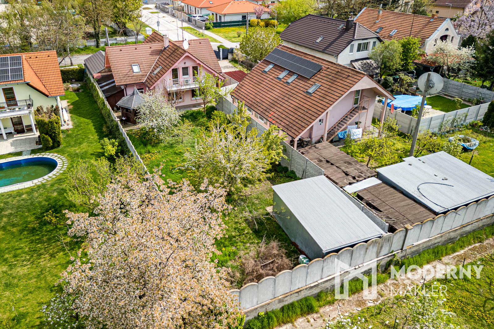 Exteriér nehnuteľnosti dopĺňa nádherná, priestranná záhrada s dreveným altánkom, ktorá prirodzene rozširuje obytný priestor domu a vytvára ideálne miesto na oddych, rodinné stretnutia či pokojné chvíle v súkromí. Súčasťou je aj plnohodnotný záhradný domček na náradie, ktorý zabezpečuje praktické uskladnenie bez zásahu do interiéru. Nechýba ani samostatná garáž so skladovým priestorom, ktorá prináša komfortné parkovanie a ďalší úložný priestor pre každodenné potreby.