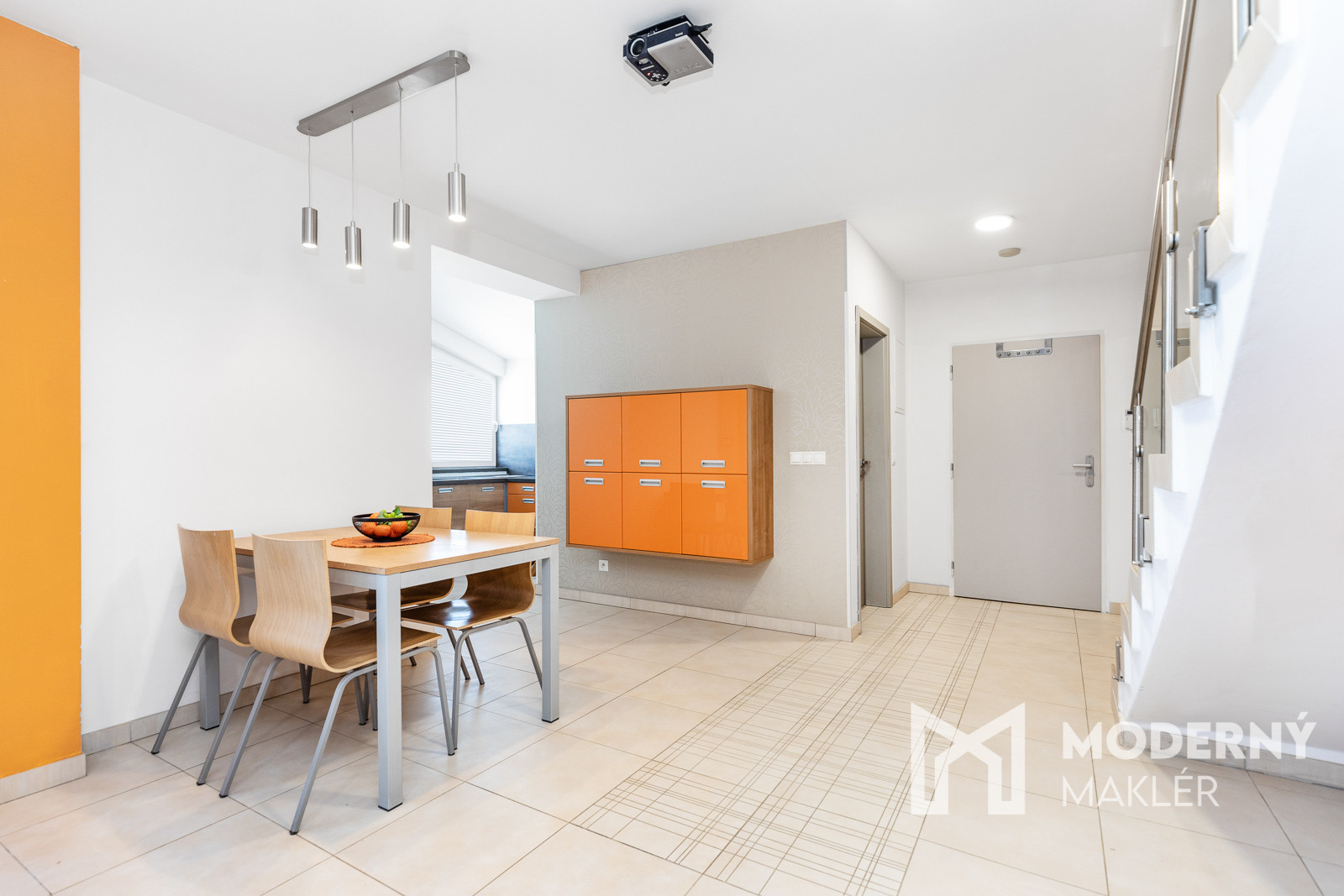 Po vstupe do nehnuteľnosti sa dostanete do priestrannej obývacej izby prepojenej s jedálenskou časťou, ktorá pôsobí mimoriadne vzdušne vďaka svojej veľkorysej rozlohe. Z obývacieho priestoru je priamy výstup na priestranný balkón, ktorý prirodzene rozširuje dennú zónu. Na dennú časť nadväzuje samostatná kuchyňa vybavená kuchynskou linkou vyrobenou na mieru a vstavanými spotrebičmi (sklo keramická varná doska, elektrická rúra, umývačka riadu a digestor). Pri kuchyni sa nachádza praktická komora pre dodatočné úložné priestory. Spodné podlažie dopĺňa samostatná toaleta spojená s práčovňou, ktorá ponúka dostatočný priestor pre umiestnenie práčky, sušičky a ďalšieho vybavenia.